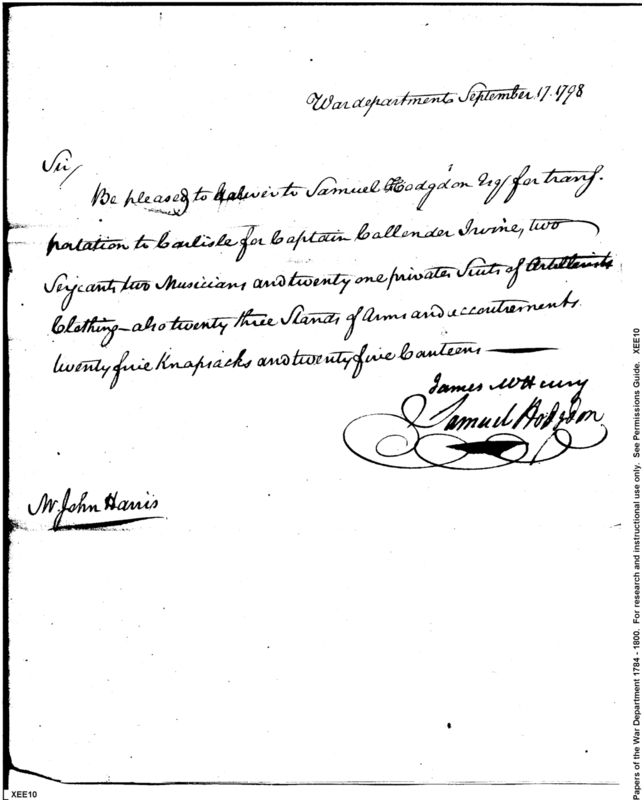 - In source: Collection: Correspondence, Reports, Returns, Bills, Accounts Current' Statements, Receipts, Vouchers and Contracts of Philadelphia Supply Agencies (Coxe and Irvine Papers), 1794-1842. (RG92)