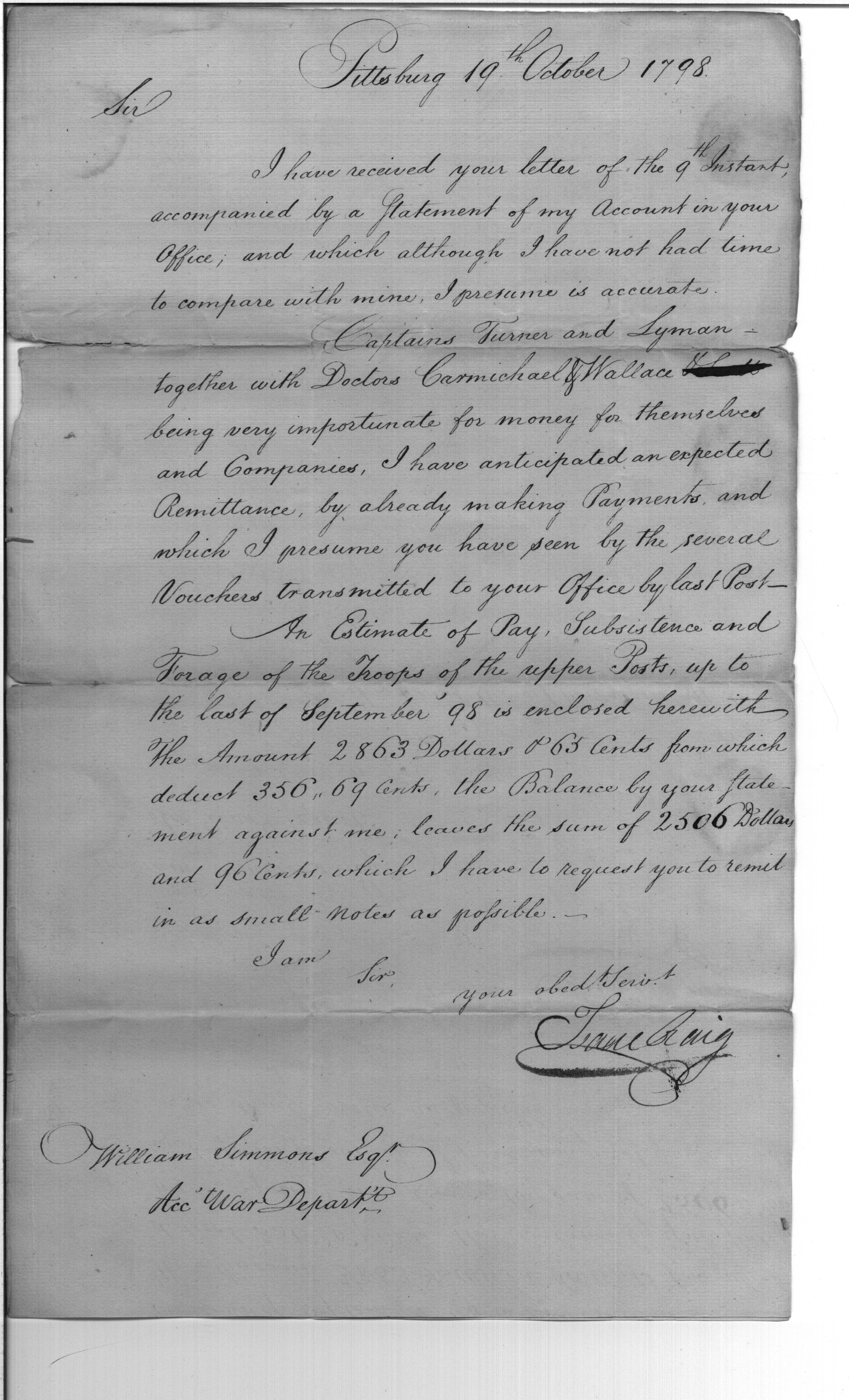 - Document: Major Craig discusses pay and accounting with William Simmons