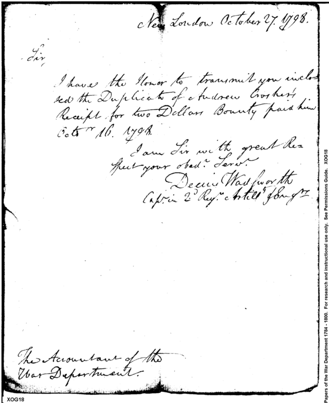 Post Revolutionary War Papers, 1784-1815. (RG94)