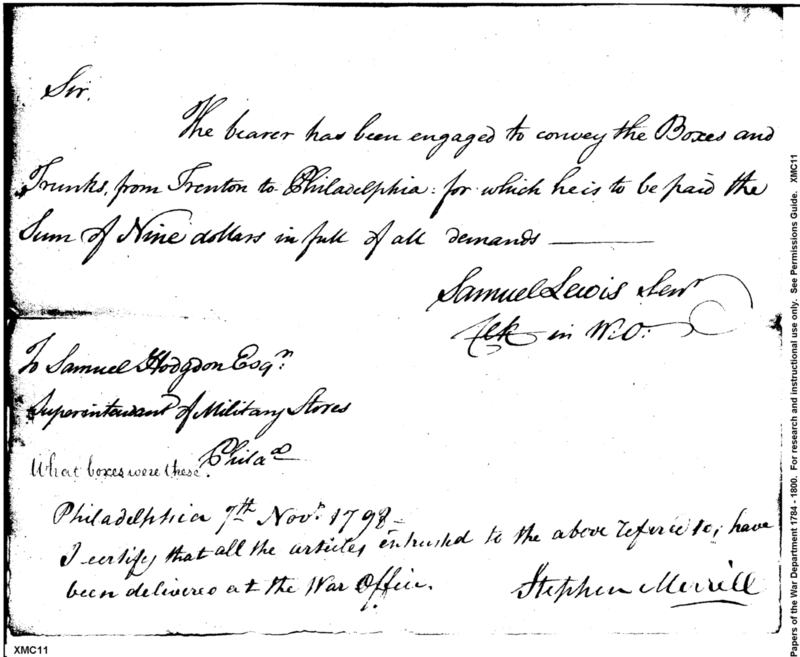 - Document: Conveyance of boxes and trunks from Trenton to Philadelphia