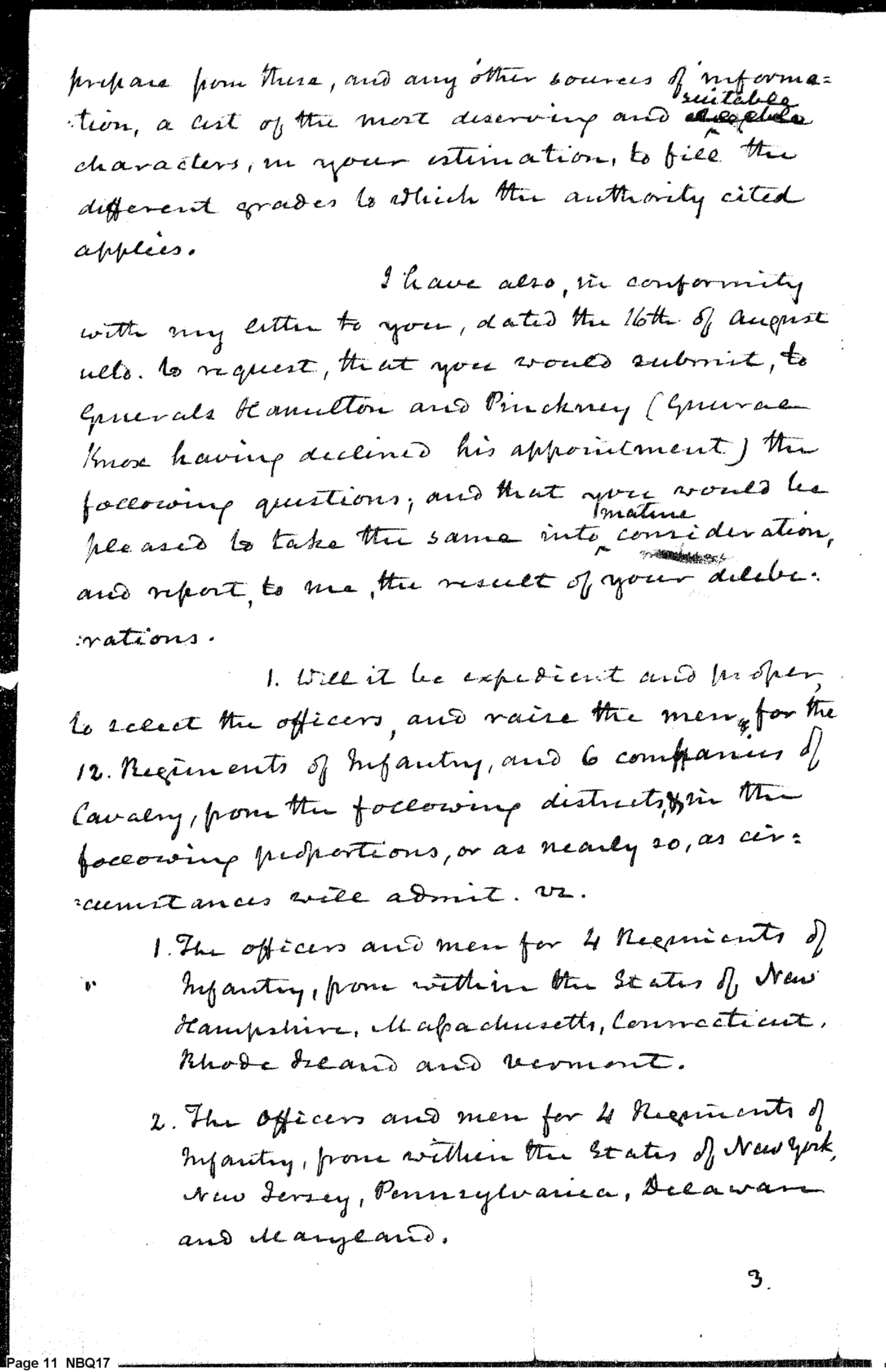 - Document: Appointment of Officers; Apportioning of Troops; Requests Finances
