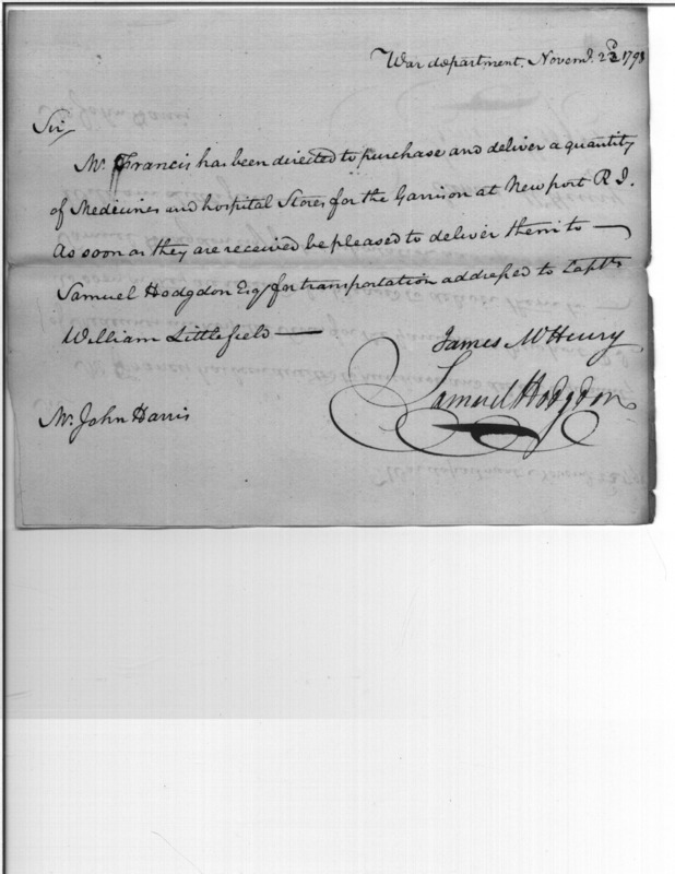 - In source: Collection: Correspondence, Reports, Returns, Bills, Accounts Current' Statements, Receipts, Vouchers and Contracts of Philadelphia Supply Agencies (Coxe and Irvine Papers), 1794-1842. (RG92)