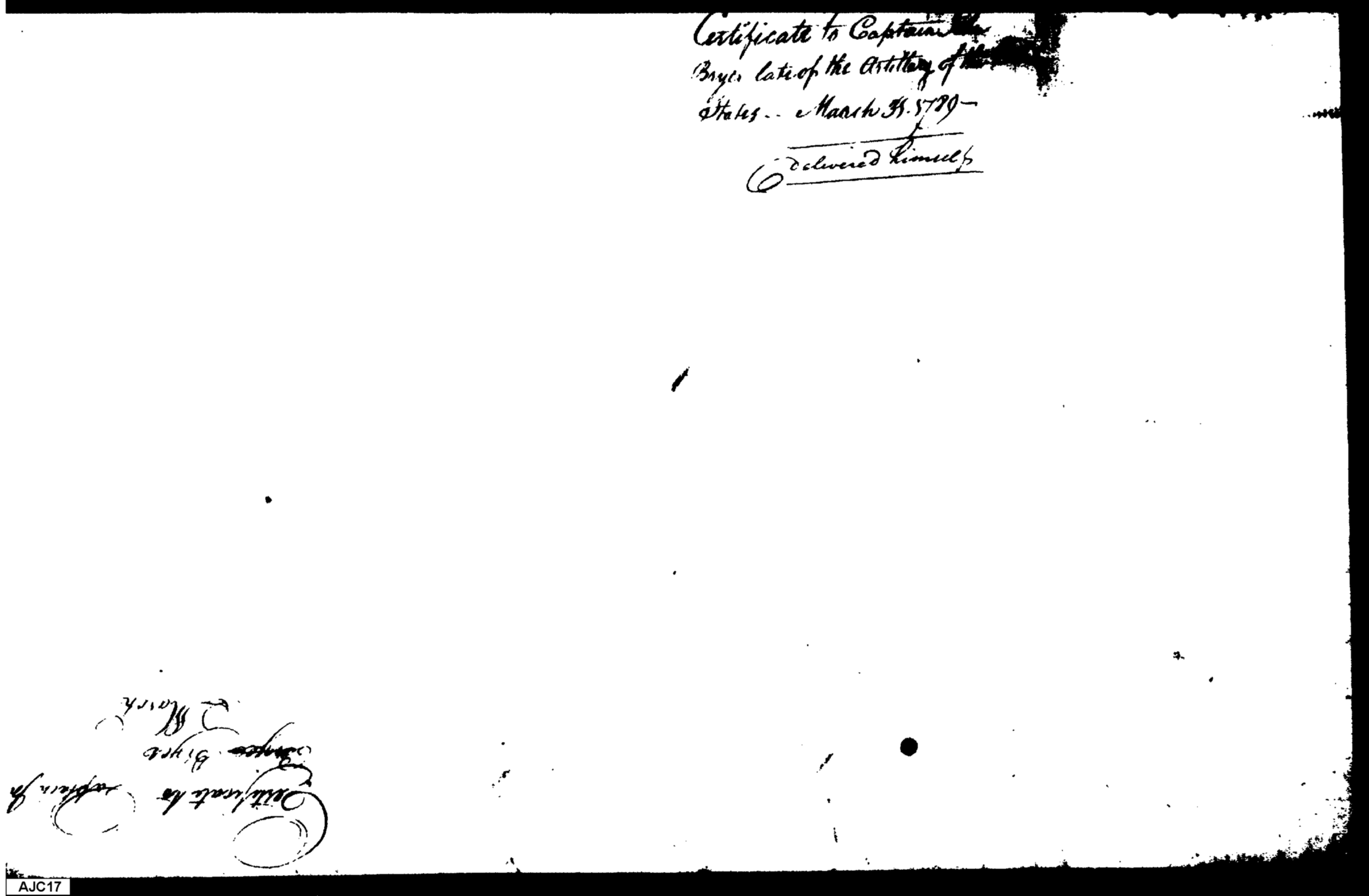 - Document: Secretary at War certifies the military service of John Bryce.