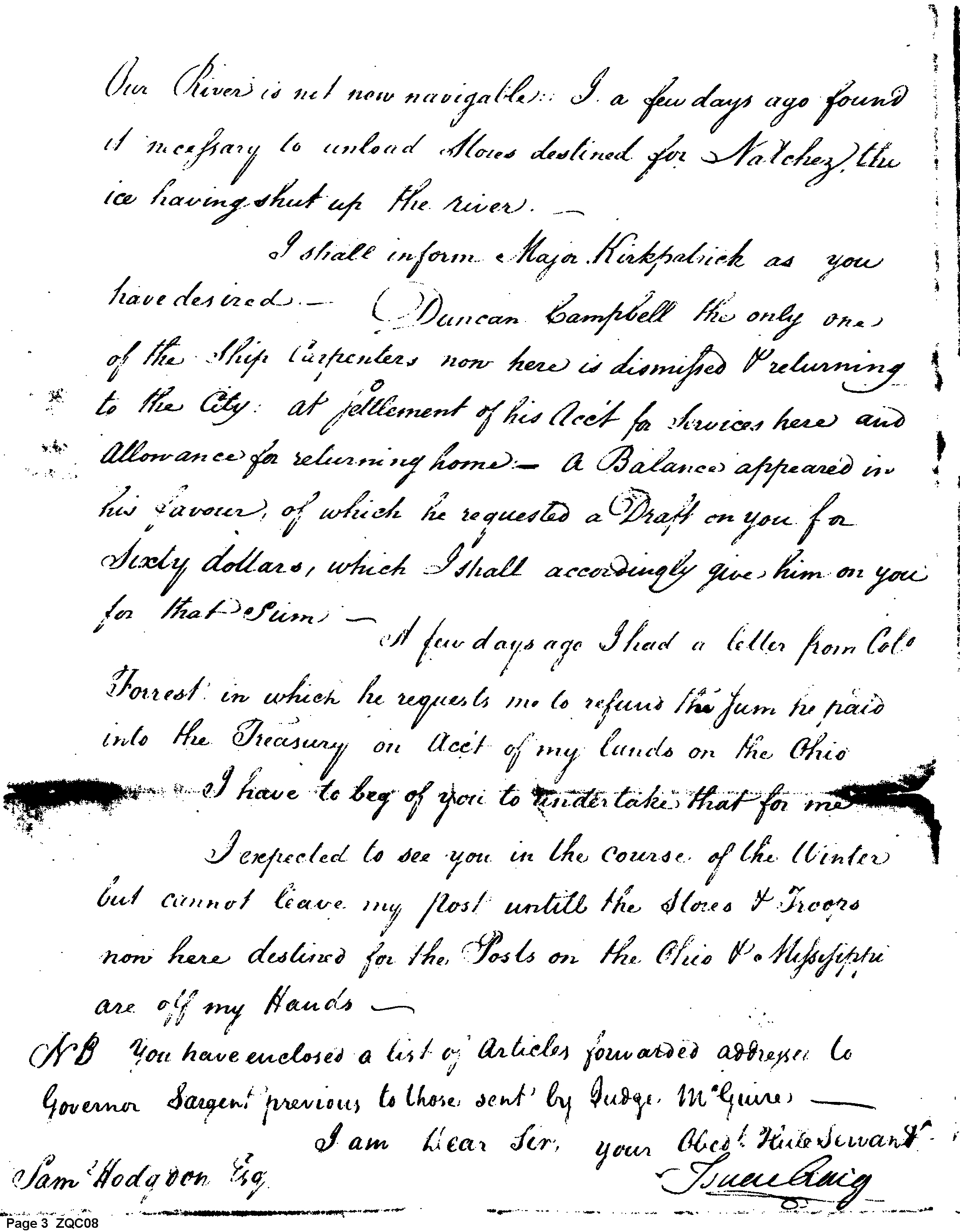 - Document: Delay of Shipment to Natchez