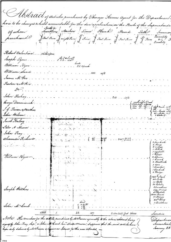 - Document: Abstract of articles purchased by Ebenezer Stevens.