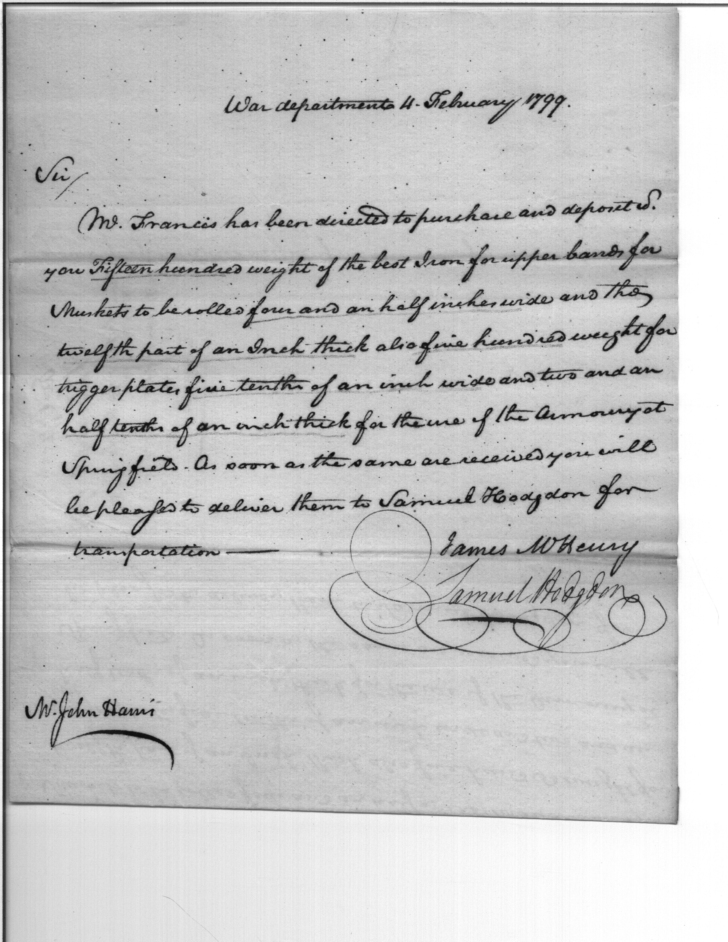 - Document: Direction to purchase iron for manufacture of muskets at Springfield Armory