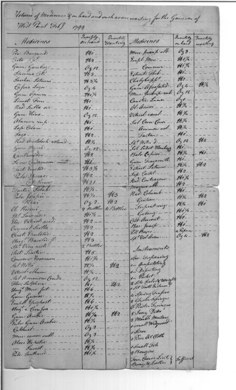 - Document: Return of Medicines on Hand at West Point