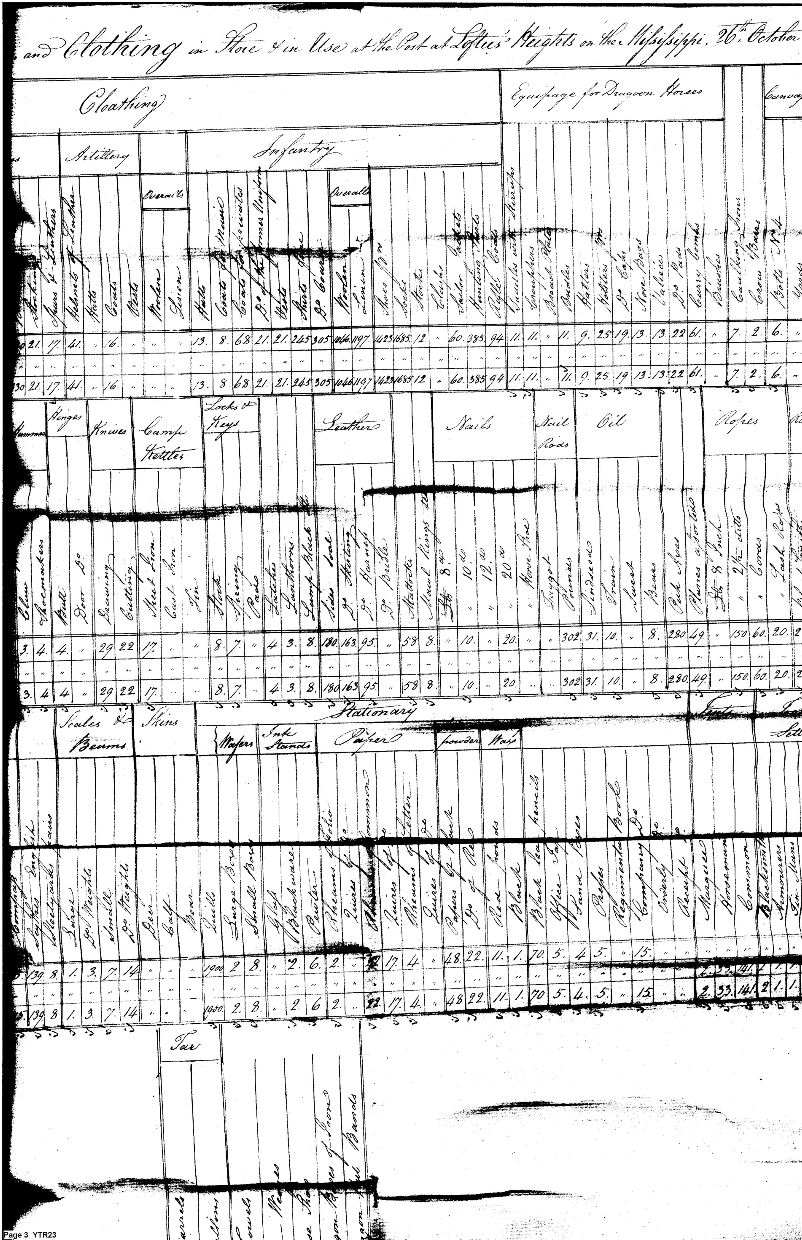 - Document: Return of Quartermaster stores and clothing at the post at Loftus Heights, Mississippi.