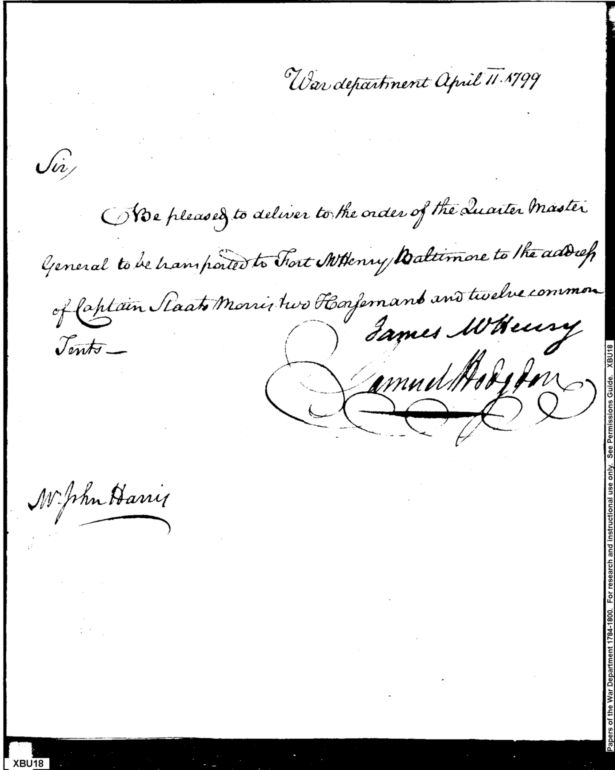 - Document: Request for Issue of Tents to Fort McHenry