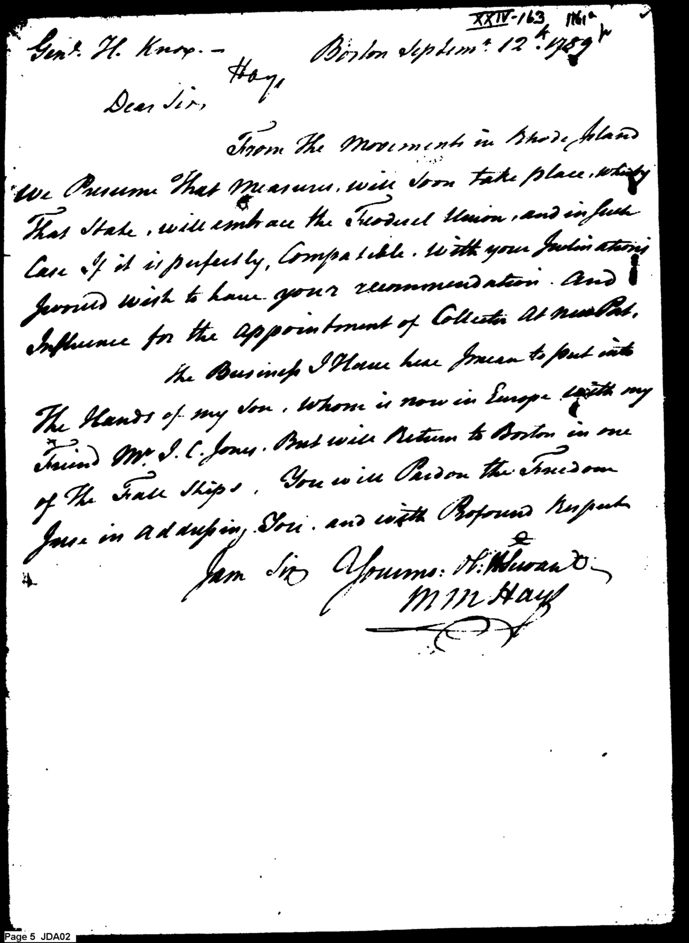 - Document: Hayes solicits Knox's recommendation for appointment
