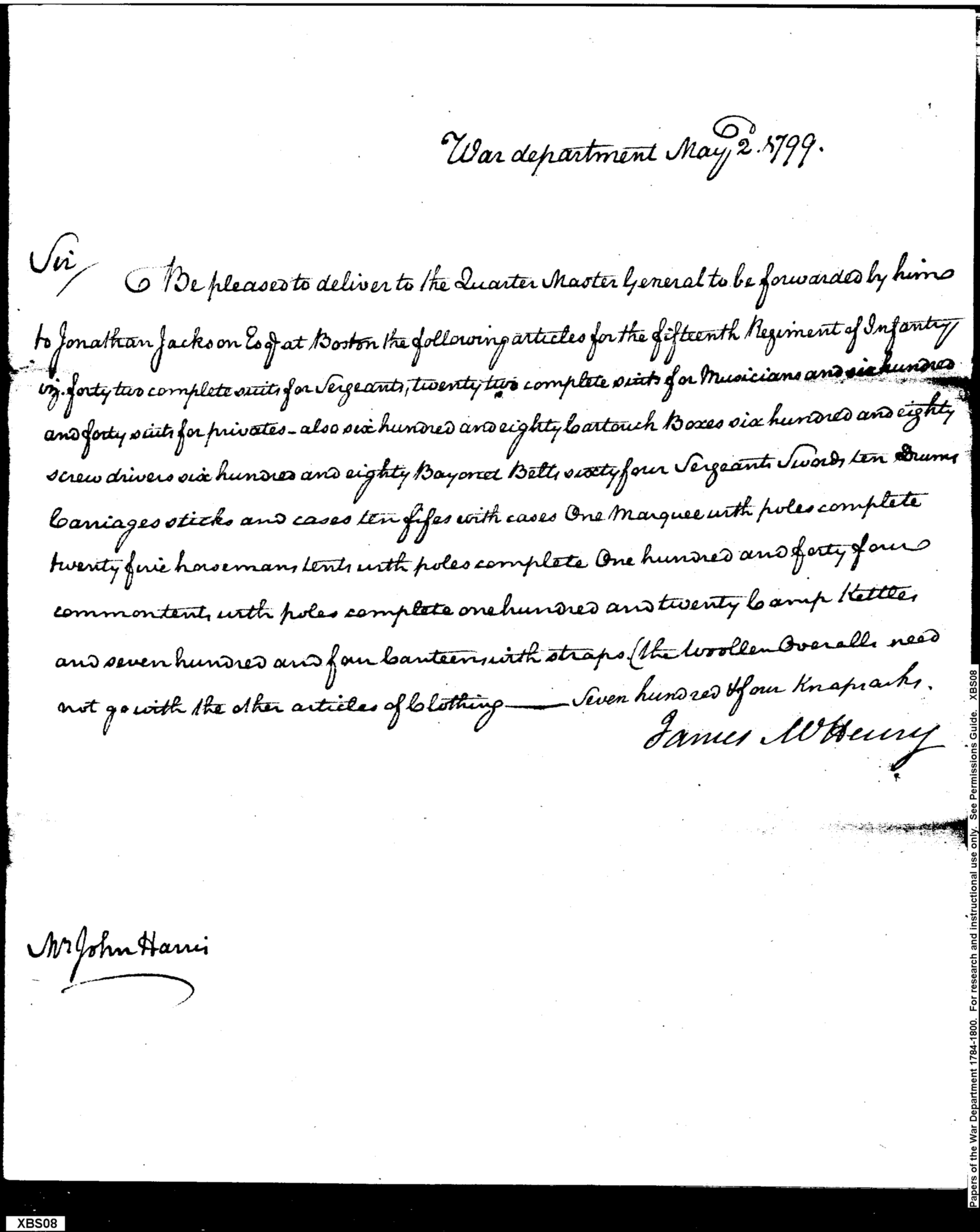- Document: Request for Issue of Assorted Military Supplies to 15th Regiment at Boston