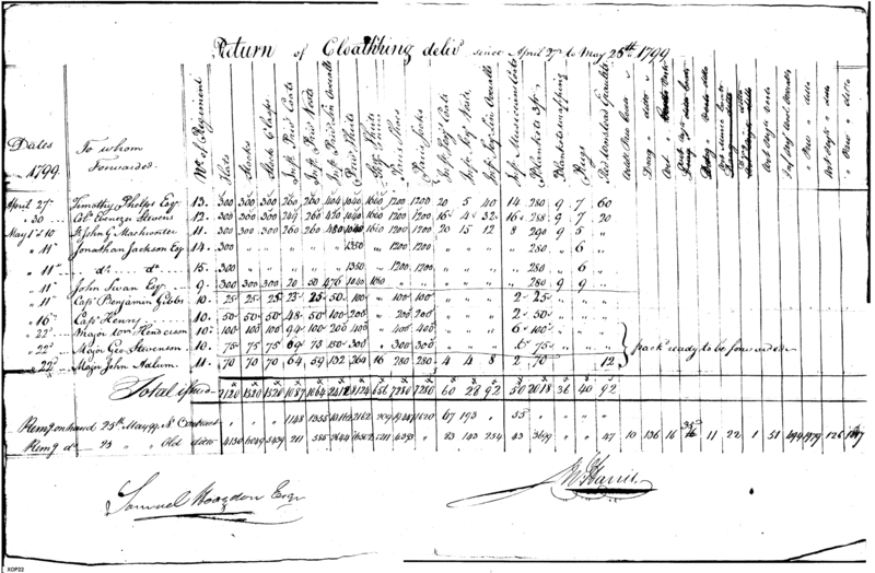 - Document: Return of Clothing Delivered, April & May 1799