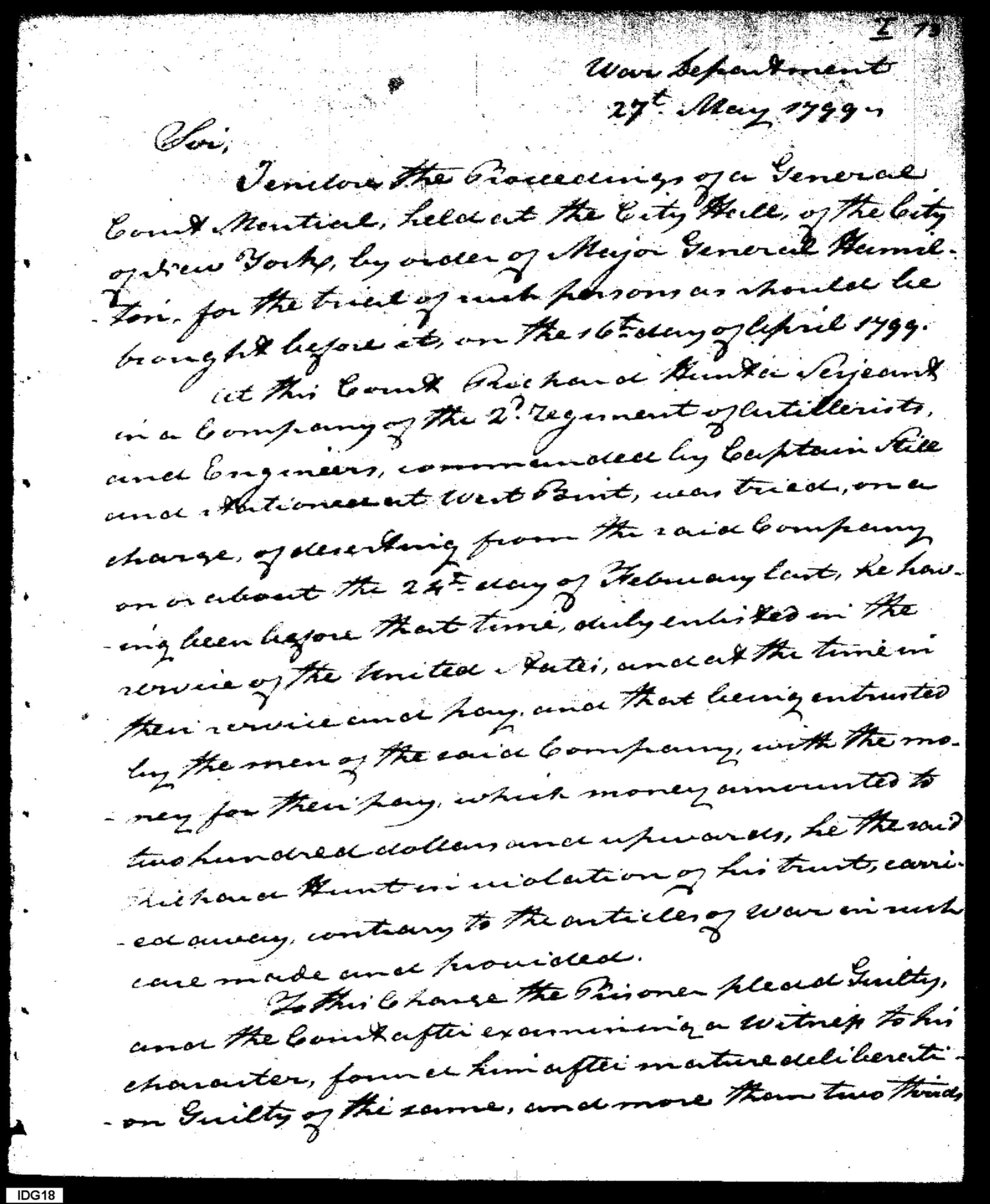 - Document: Forwarding Report of Court-Martial, with Consideration of Execution for Desertion as an Example