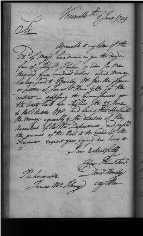 - In source: Collection: Letters Sent by David Henley, Agent of the War Department, May 1, 1799-May 7, 1800. (RG217)