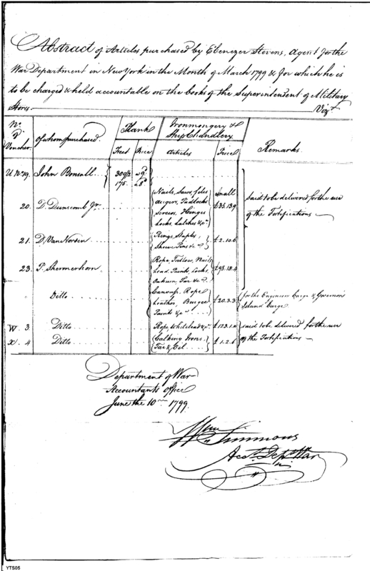 - Document: Abstract of articles purchased by Ebenezer Stevens.