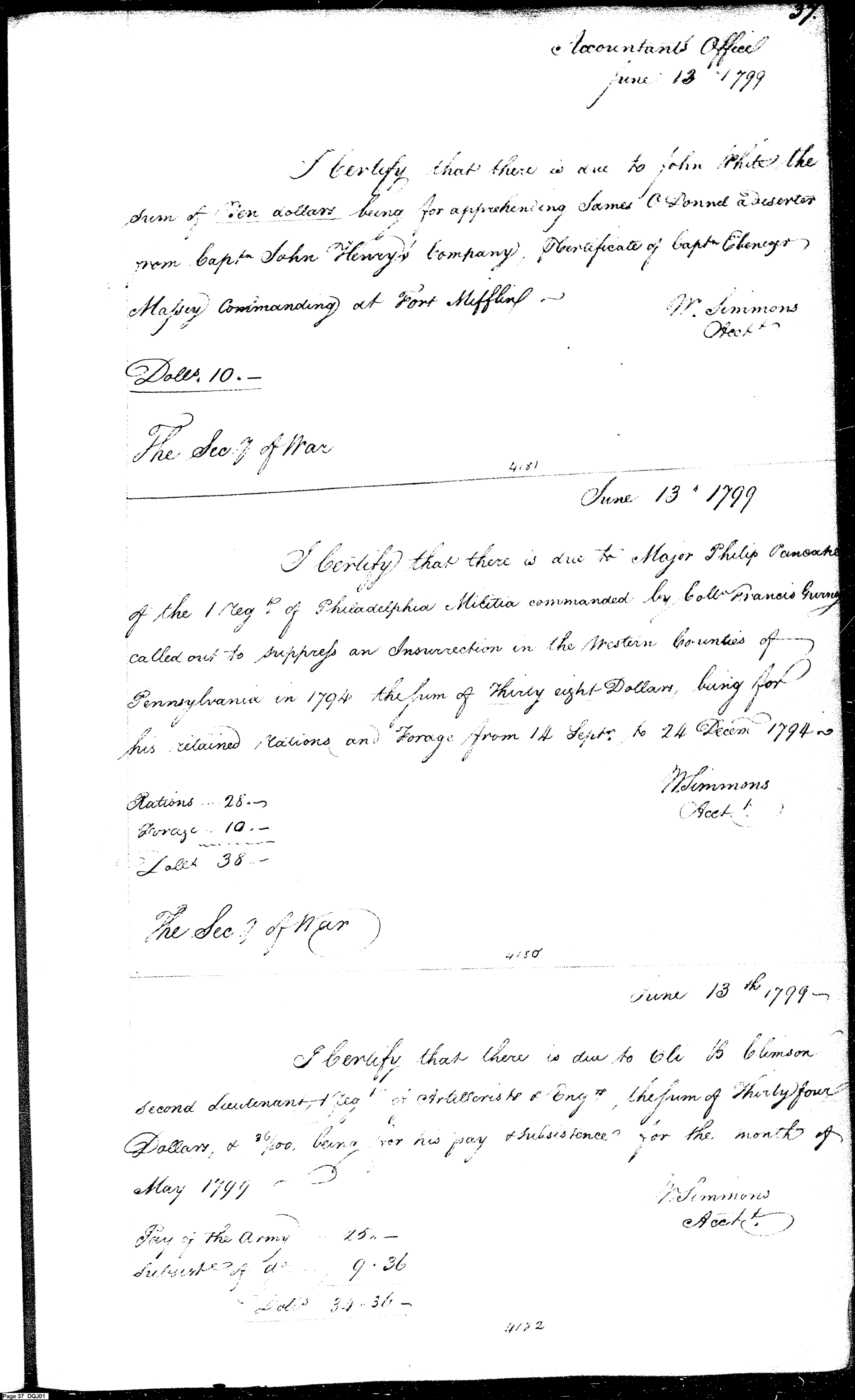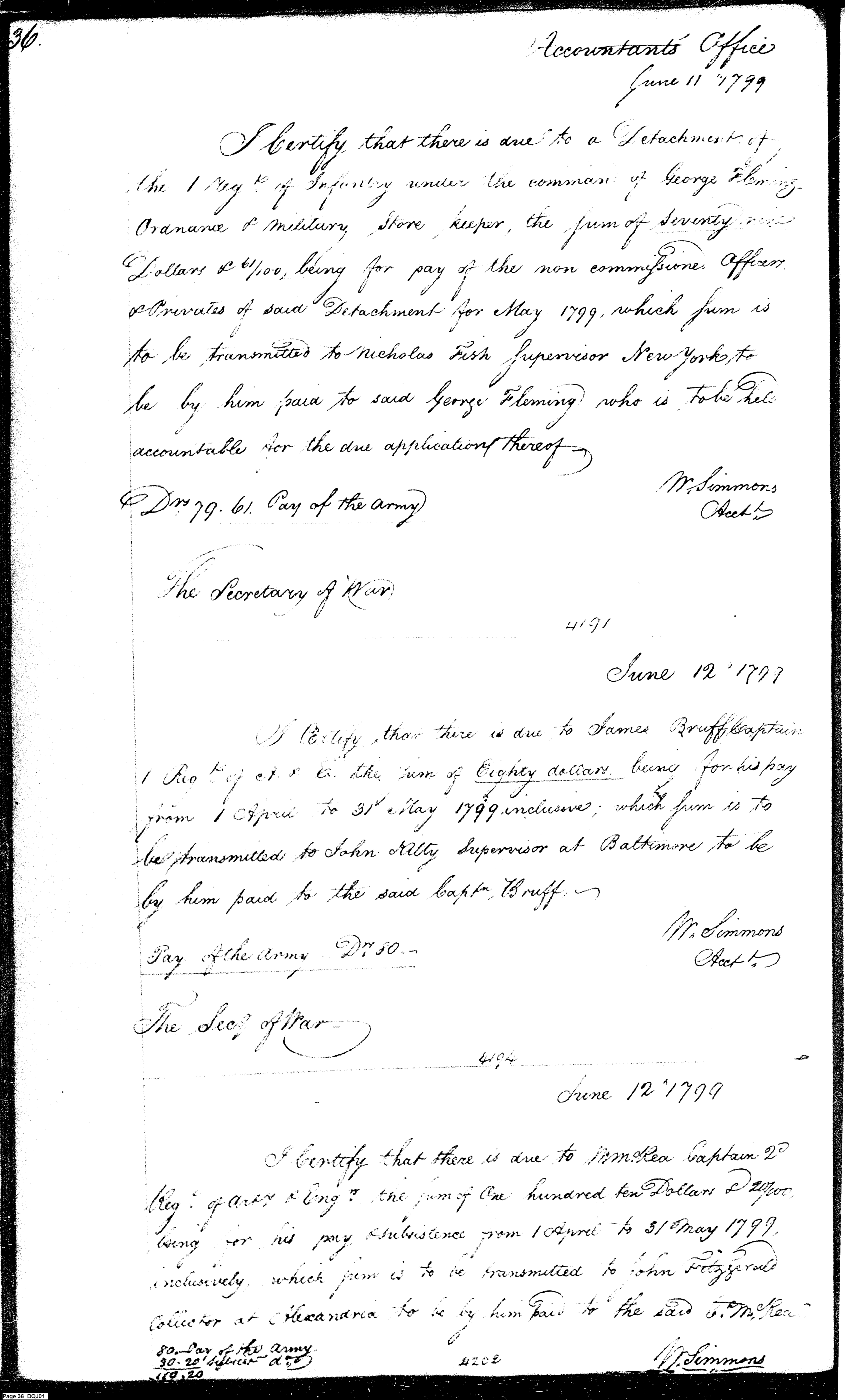 Document ViewerCertification of payment; Detachment 1st Regiment of Infantry stationed at West Point under direction of George Fleming, Ordnance and Military Storekeeper