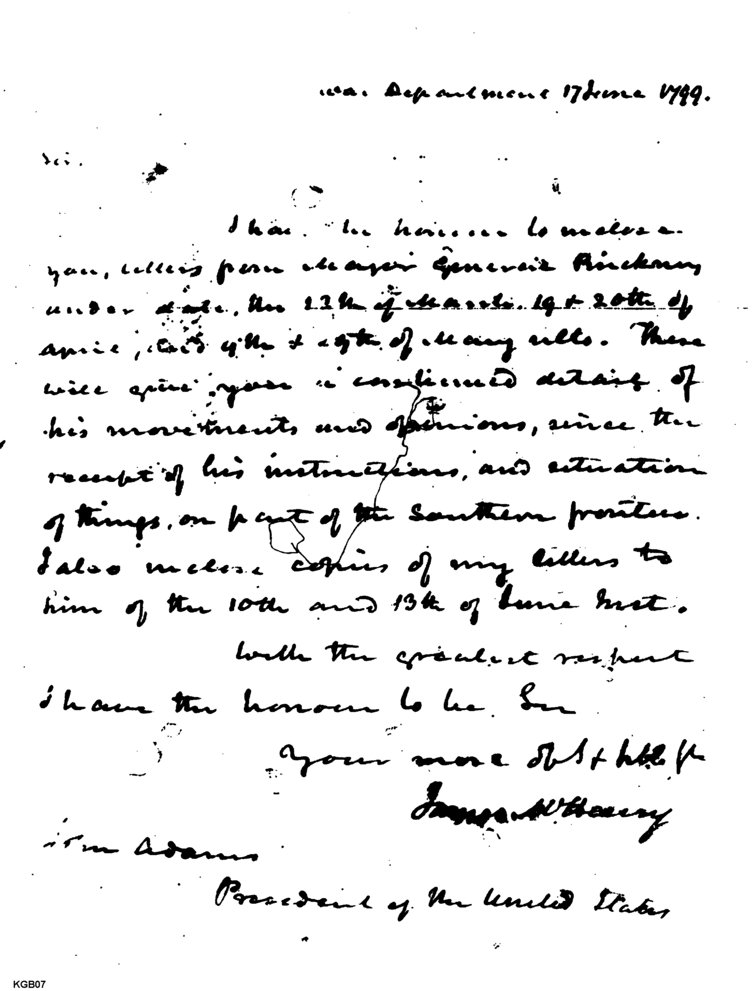 - Document: Forwarding of Correspondence with Pinckney Concerning Actions on Southern Frontier