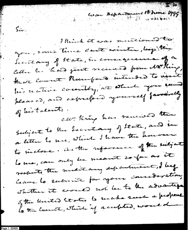 - Document: Discussion of Military Positions to Be Offered to Sir Benjamin Thompson, Count Rumford