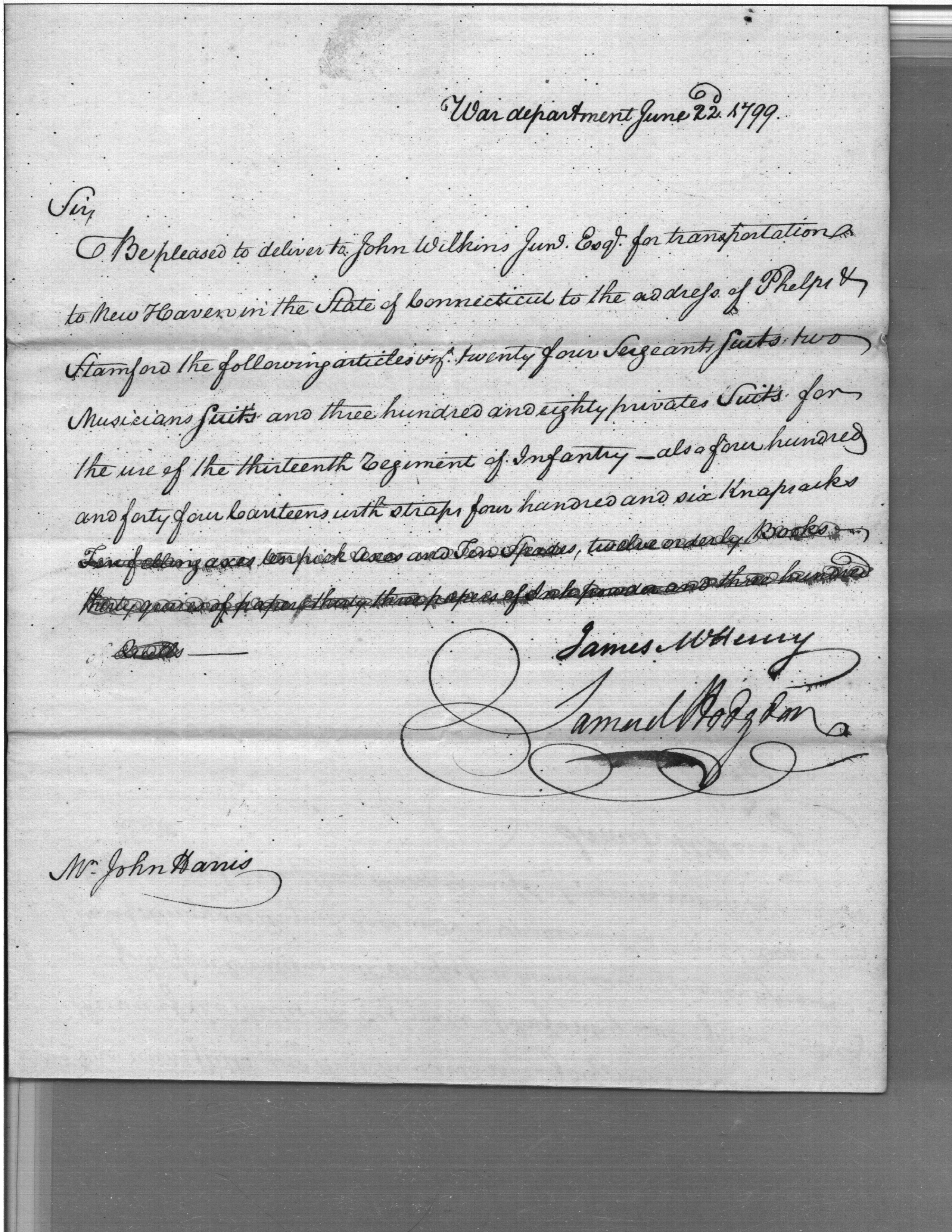 - Document: Request for Issue of Clothing & Equipment for 19th Regiment at New Haven