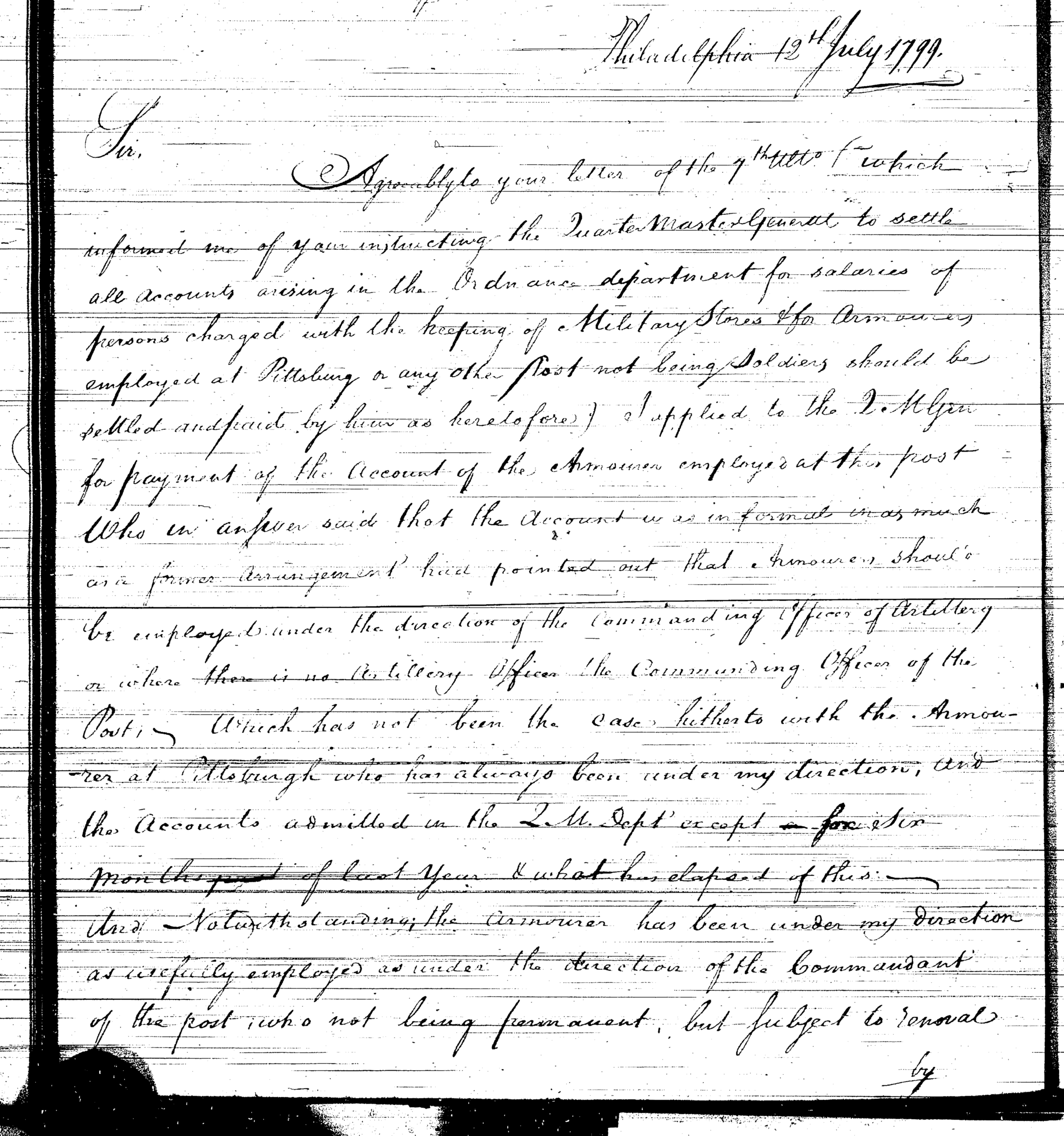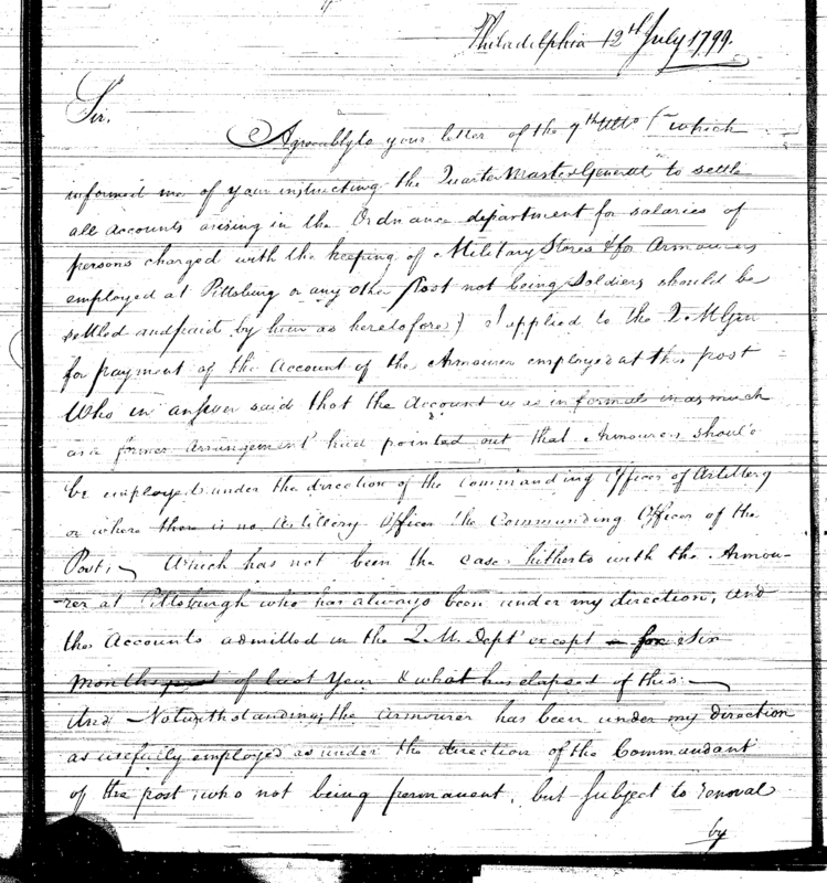 - Document: Major Craig sends status report from Fort Pitt to the Secretary at War