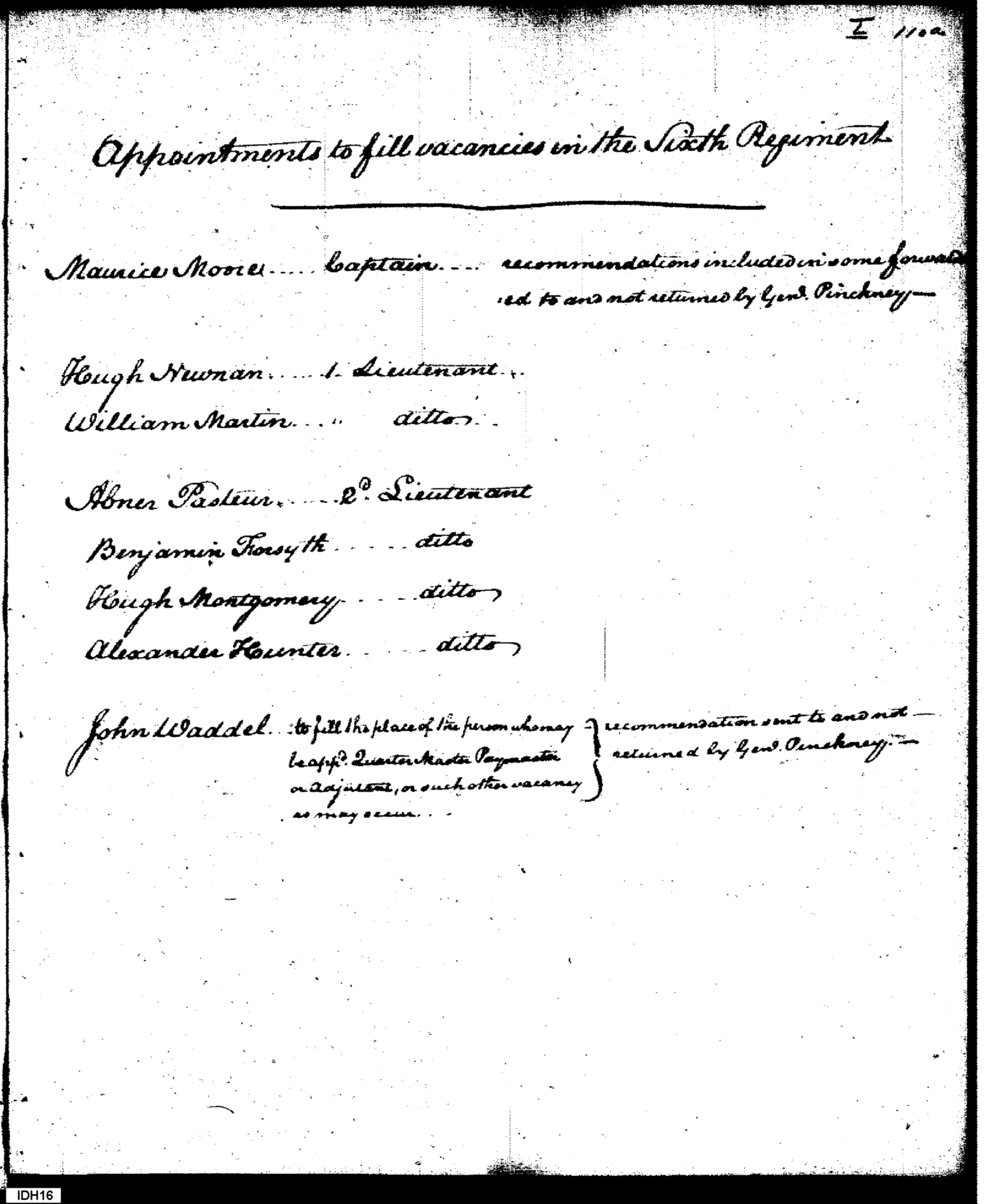 - Document: Submission of Officers to Fill Vacancies in 6th Regiment
