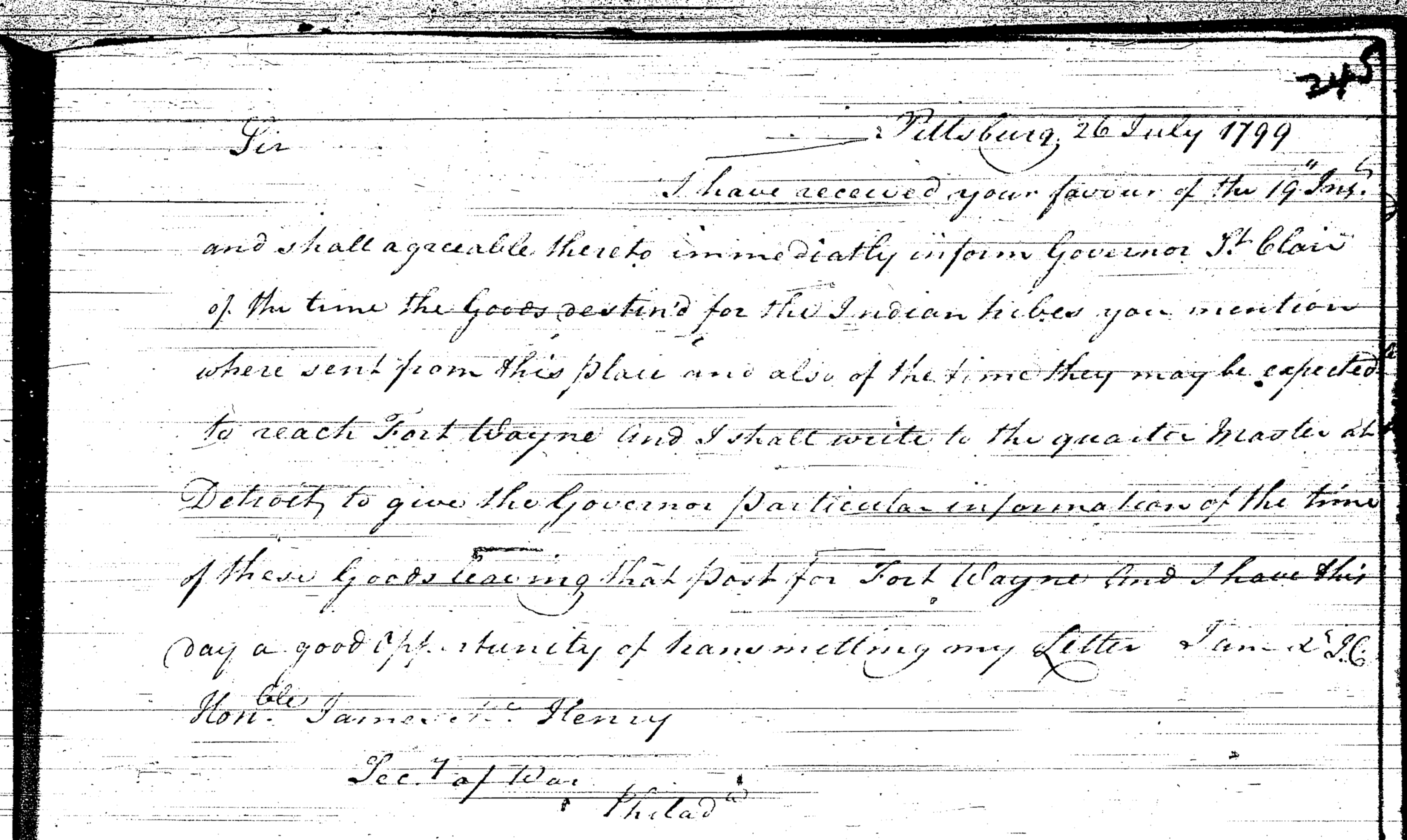 - Document: Major Craig sends status report from Fort Pitt to the Secretary at War
