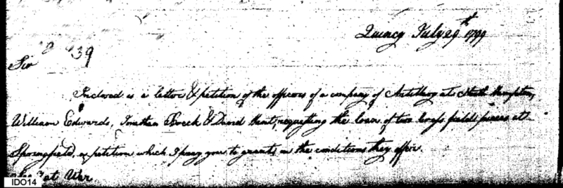 - Document: Forwarding Request of Northampton, Massachusetts Militia for Loan of Cannon