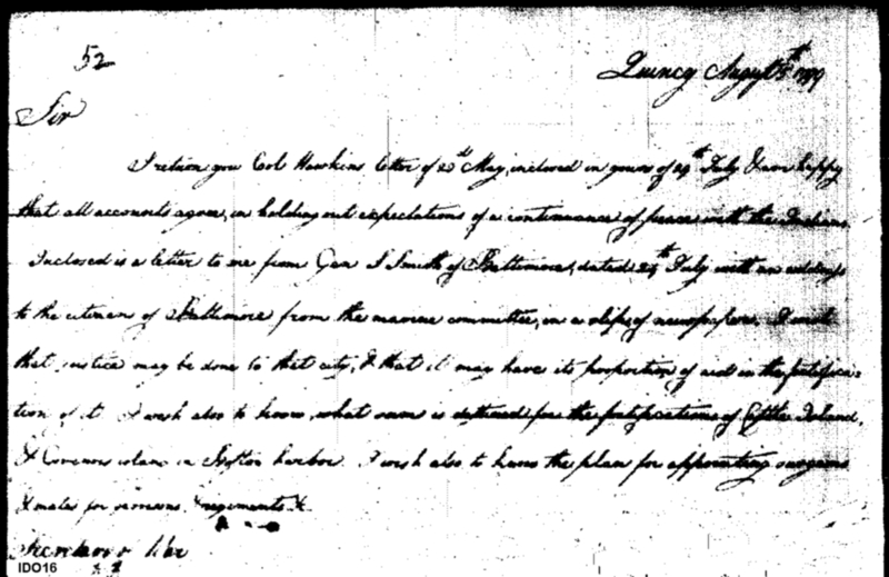 - Document: Continued Peace with Creek Indians; Funds & Plans for Fortifications at Baltimore & Boston