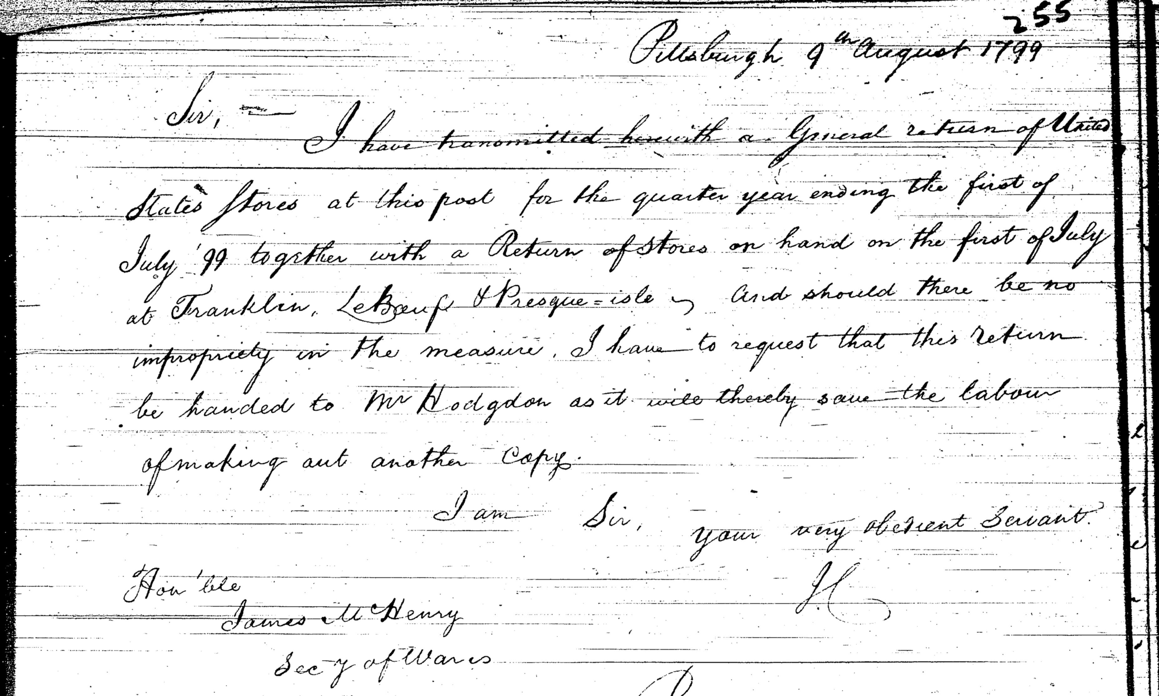 - Document: Major Craig sends status report from Fort Pitt to the Secretary at War