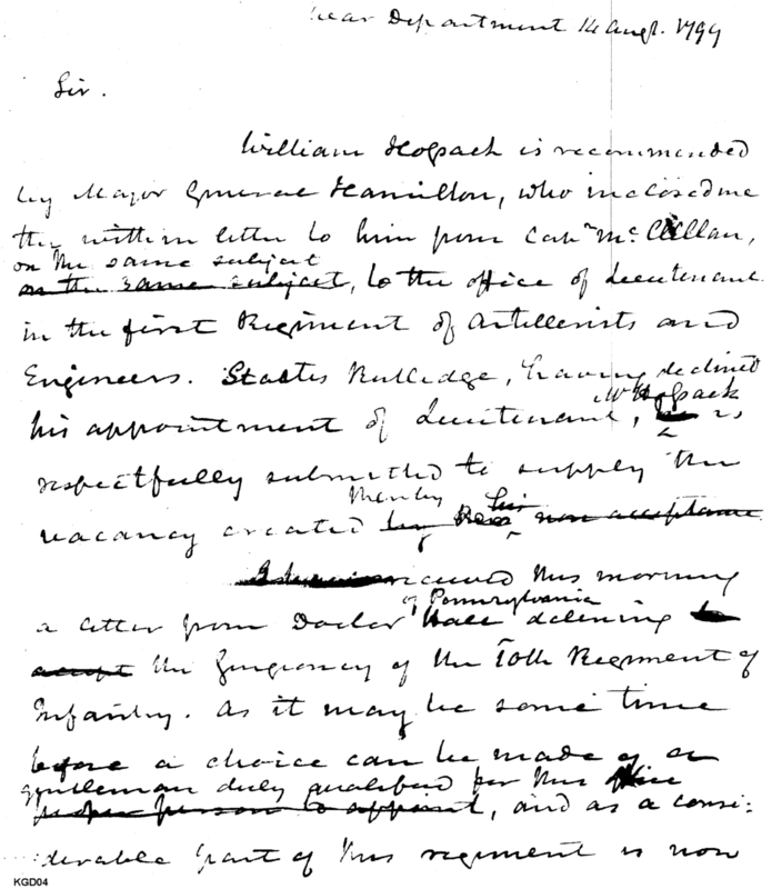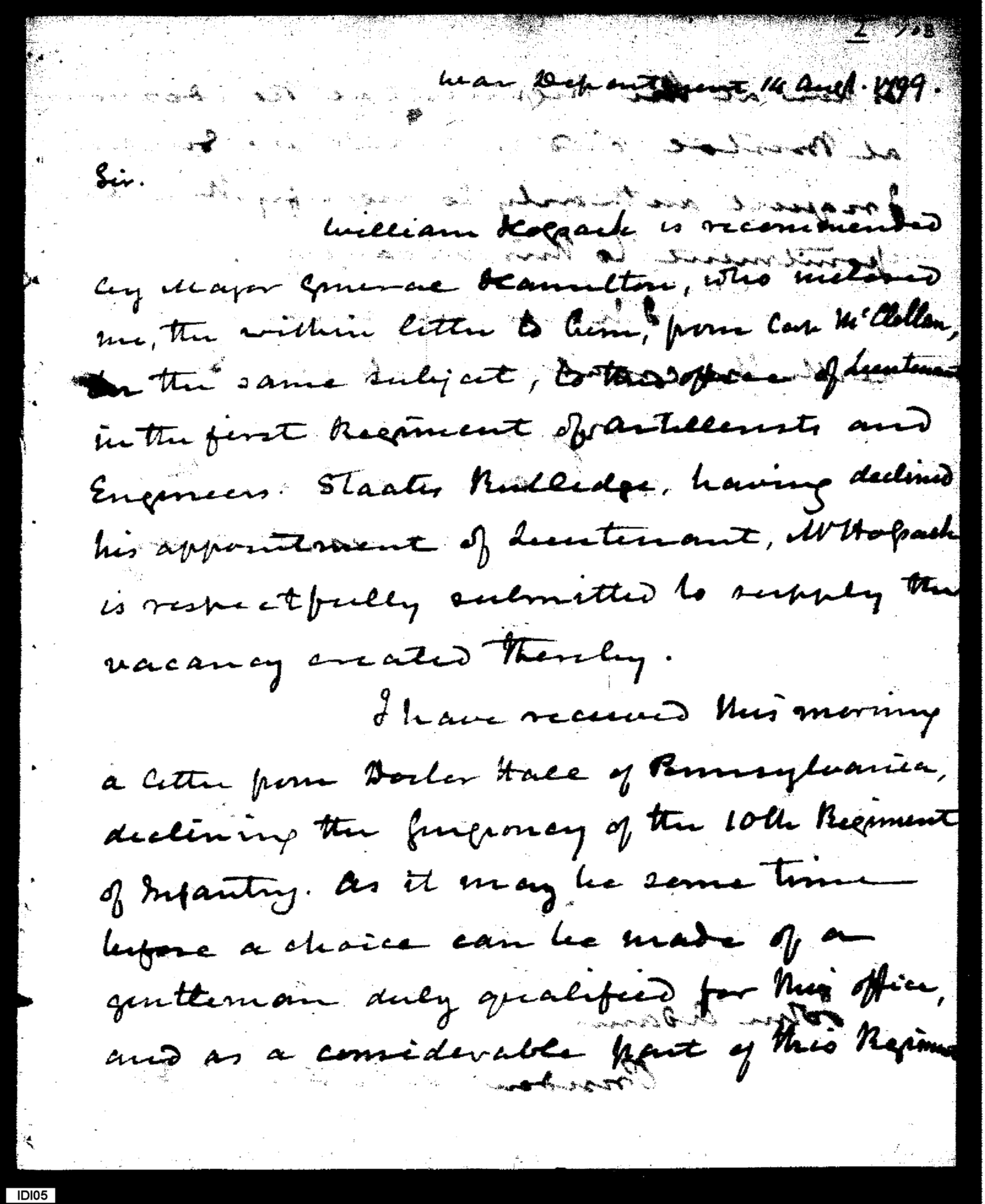 - Document: Regarding Substitute Officer Appointments for 10th Infantry & 1st Regiment of Artillerists & Engineers
