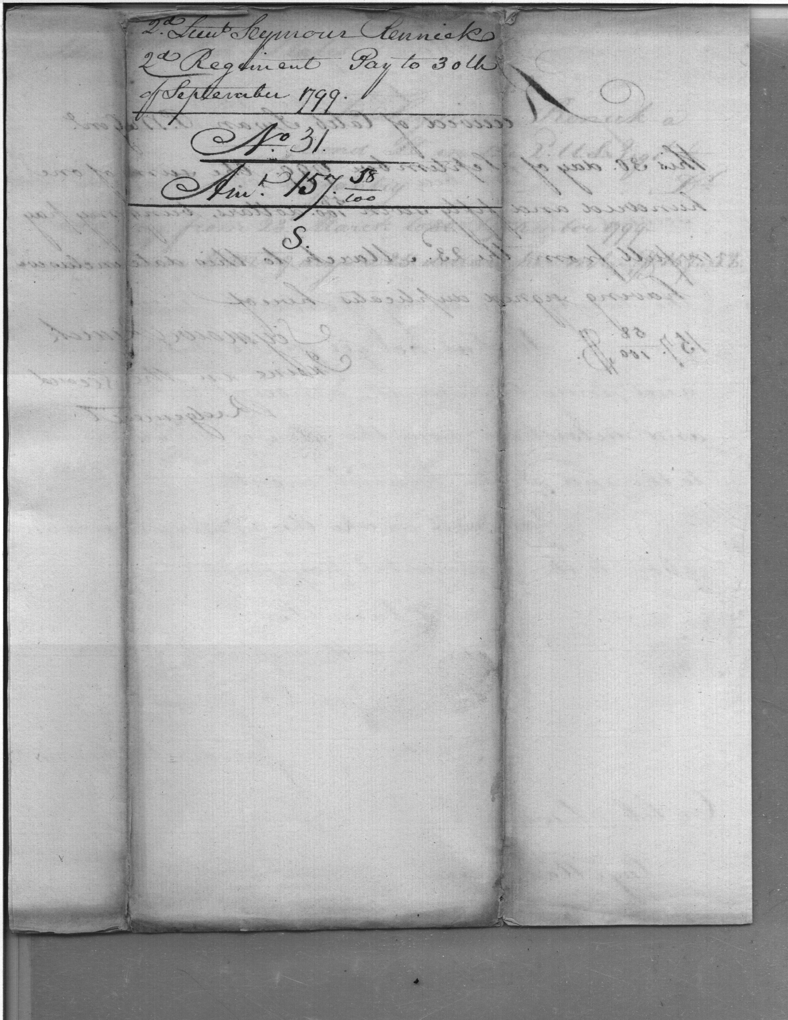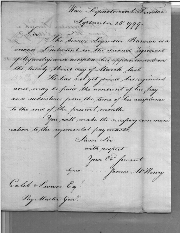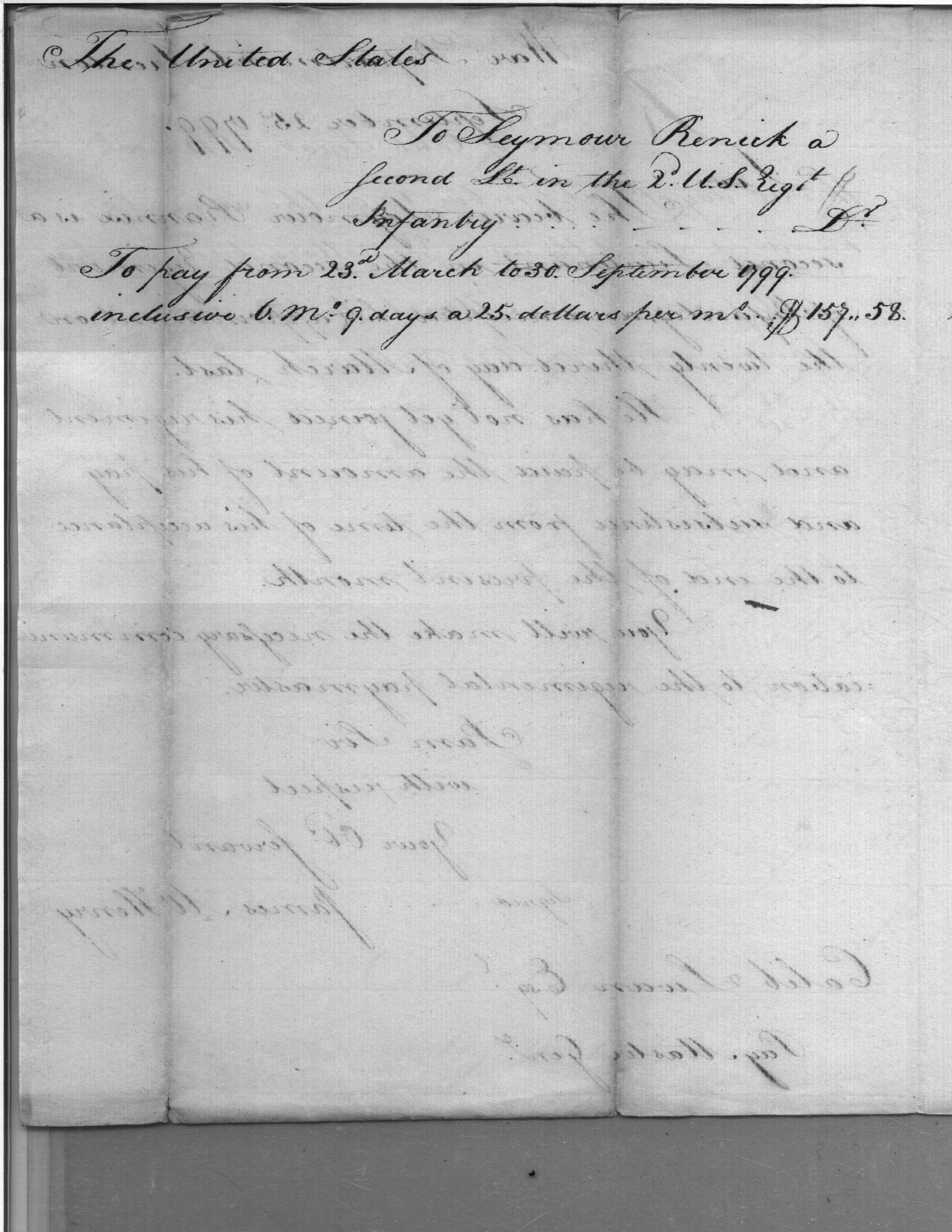 - Document: Advance of pay and subsistence for Second Lieutenant Seymour Rennick