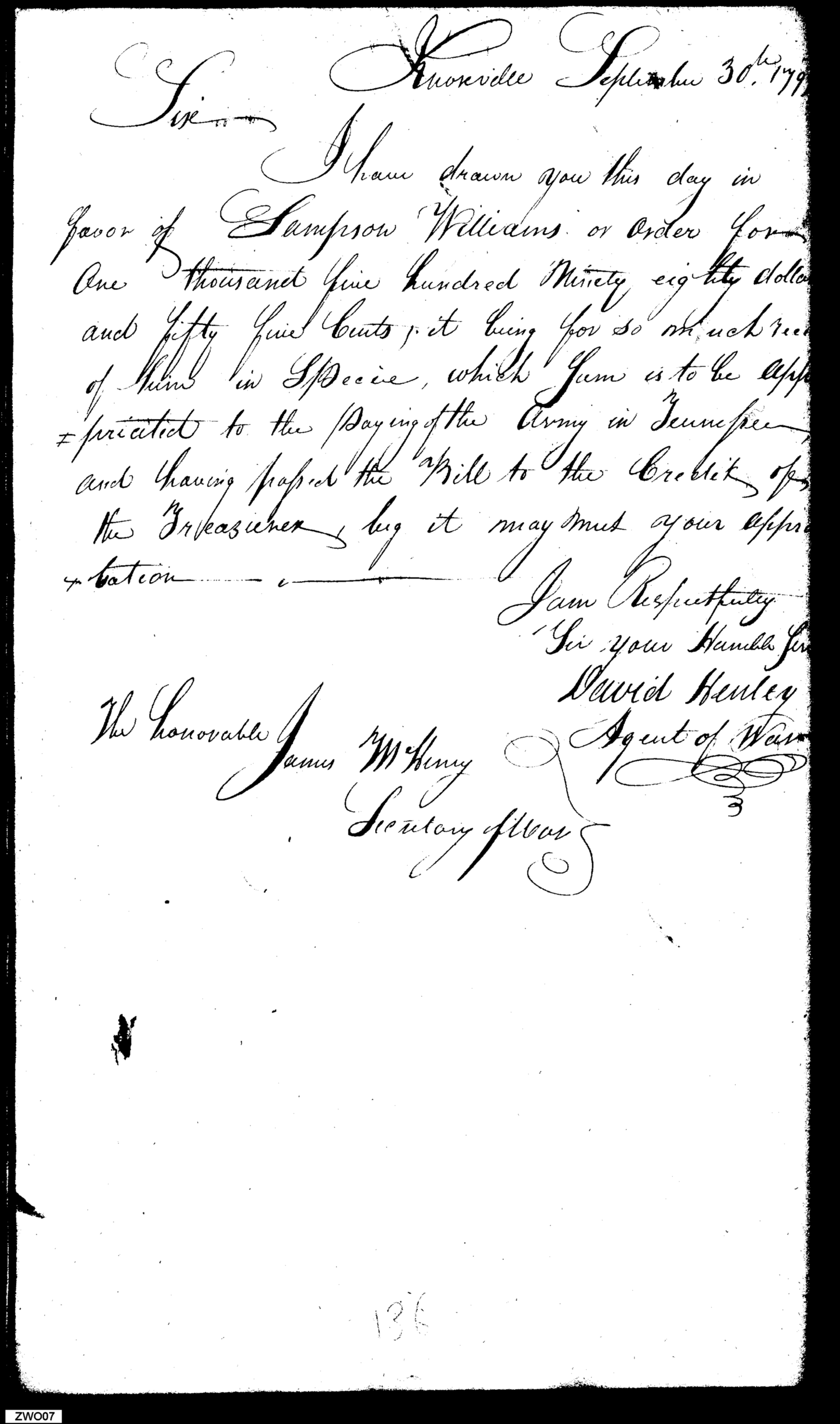- In source: Collection: Letters Sent by David Henley, Agent of the War Department, May 1, 1799-May 7, 1800. (RG217)