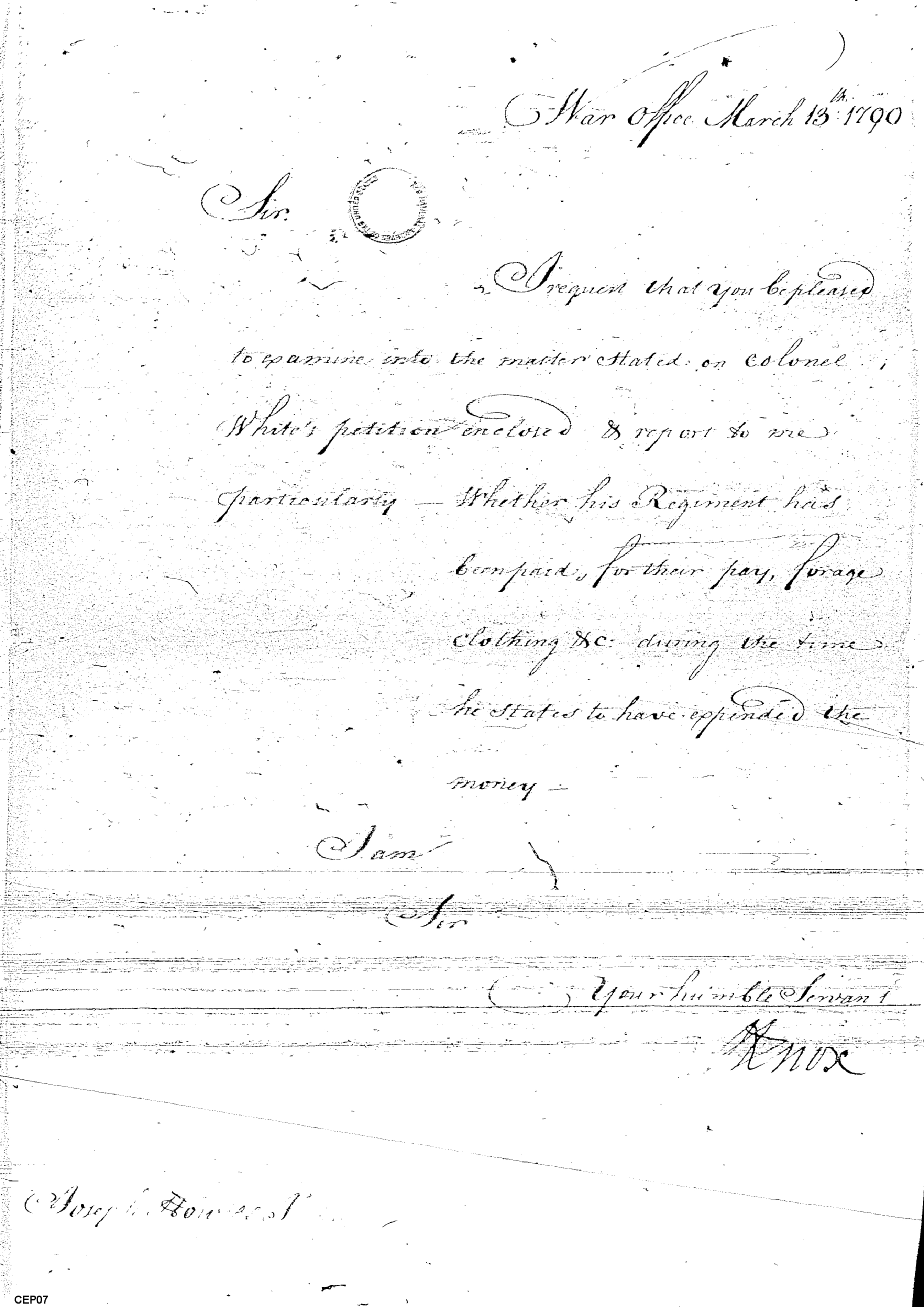 - Document: Petition of Col. White's Regiment