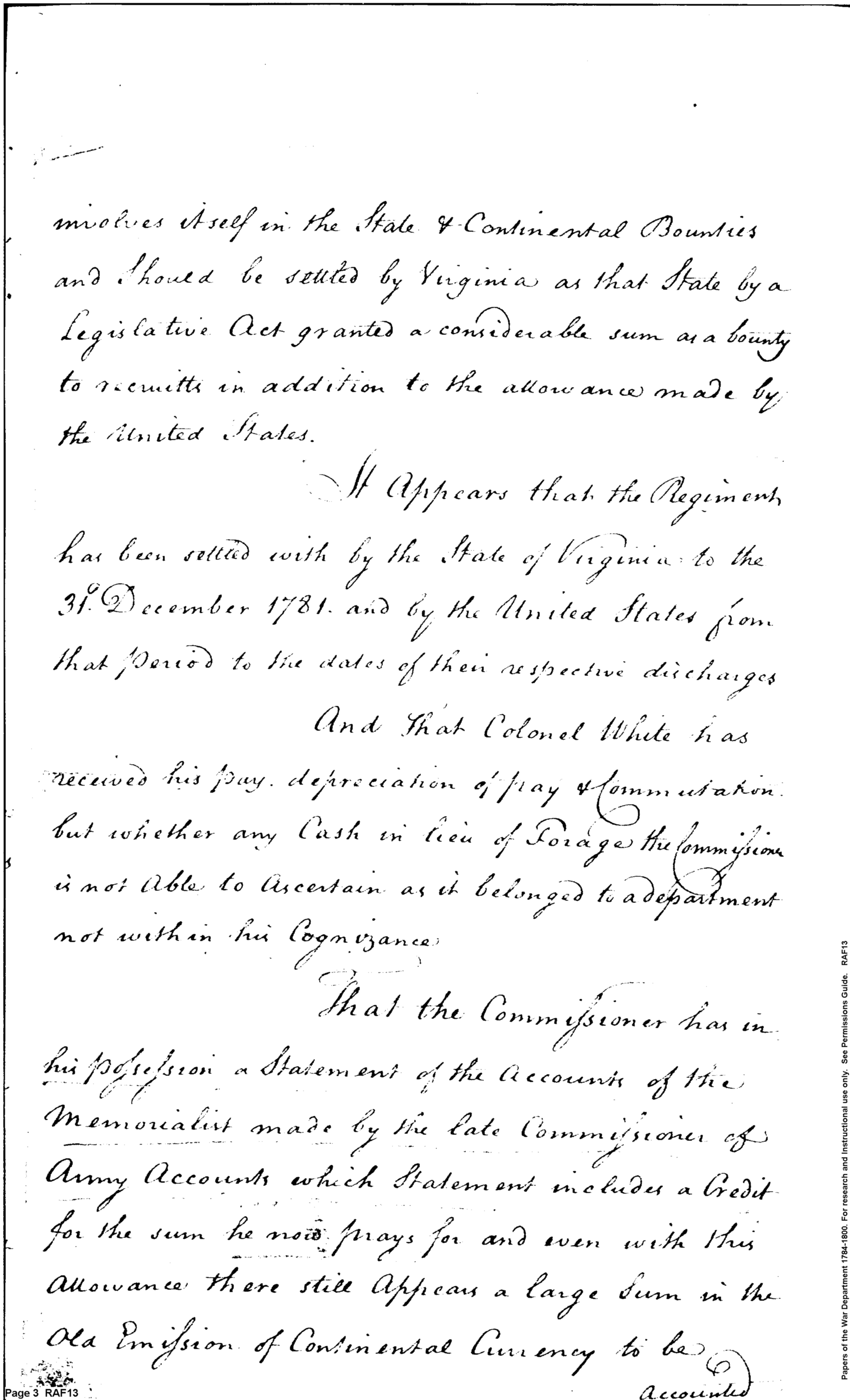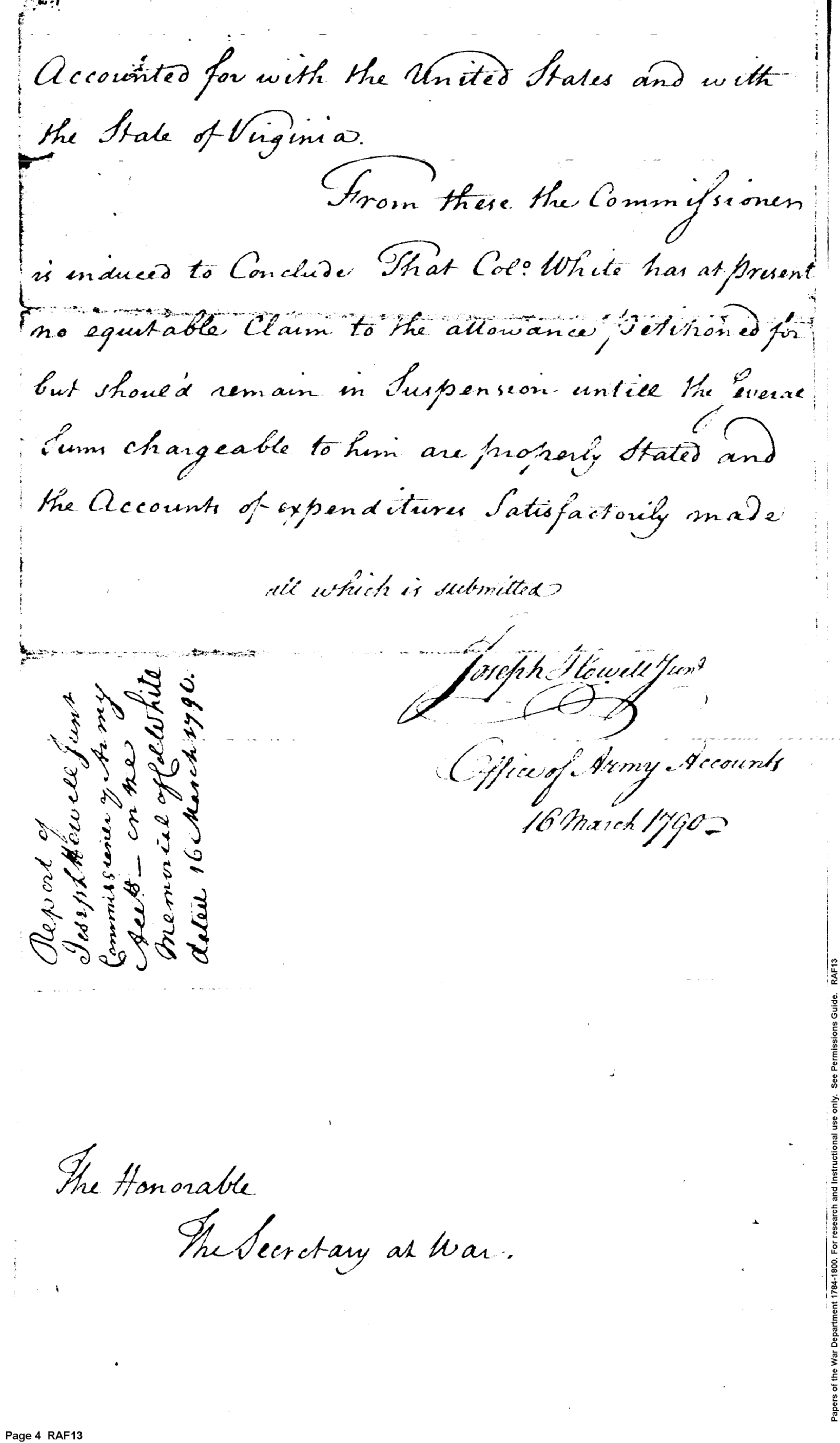 - Document: Report on Army Accounts Memorialist by Commissioner