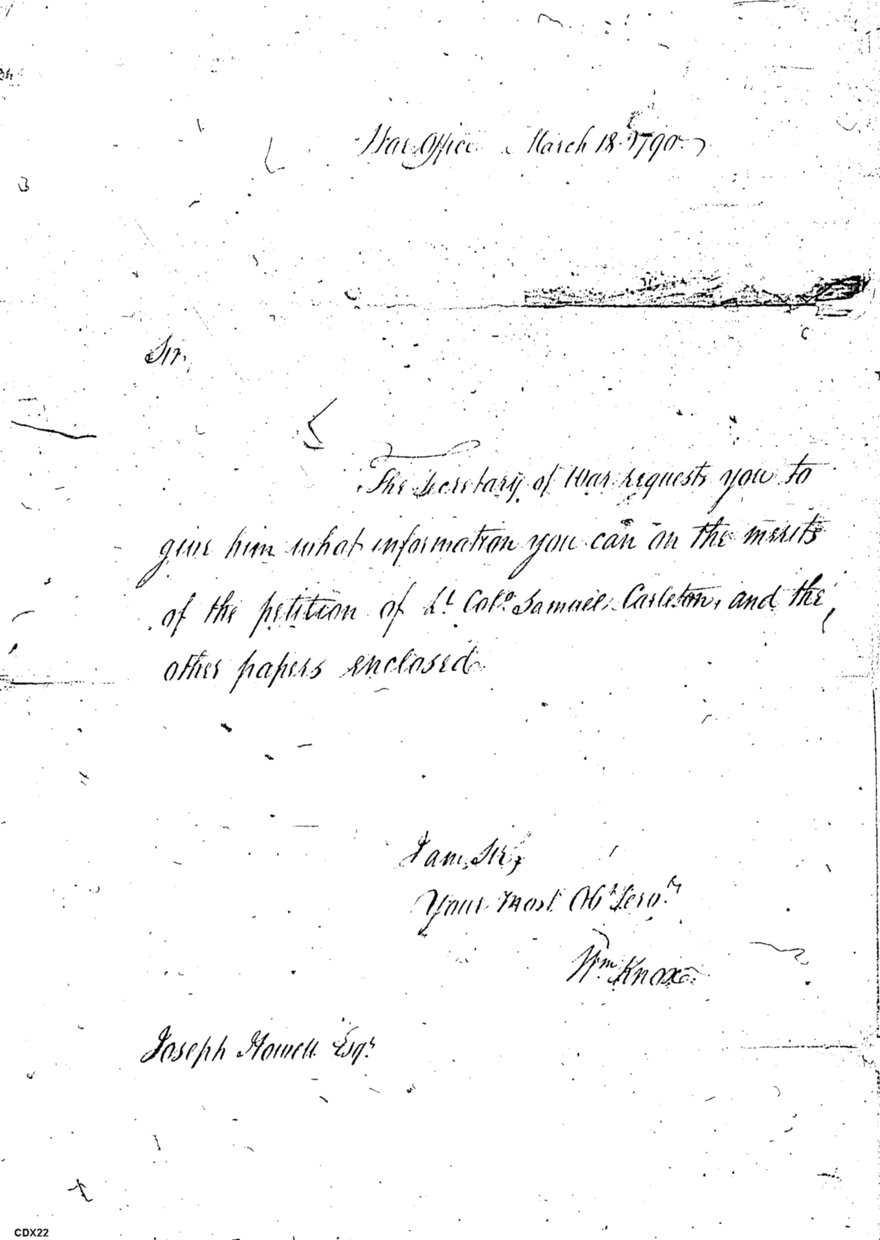- Document: Petition of Lieutenant Colonel Carleton