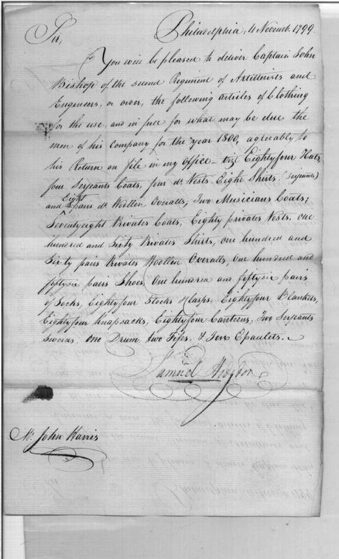 - In source: Collection: Correspondence, Reports, Returns, Bills, Accounts Current' Statements, Receipts, Vouchers and Contracts of Philadelphia Supply Agencies (Coxe and Irvine Papers), 1794-1842. (RG92)