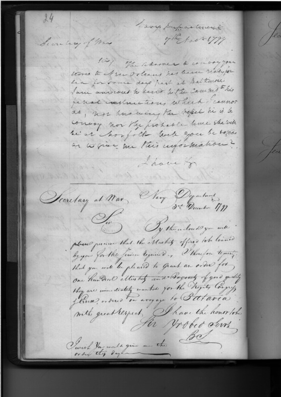 - In source: Collection: Letters Sent by the Secretary of the Navy to Federal Executive Agents (Letters to President, Secretary of State, Secretary of War, and Letters to (Requisitions on) Secretary of the Treasury and other Treasury Department Officials), June 1798-June 1824. (RG45)
