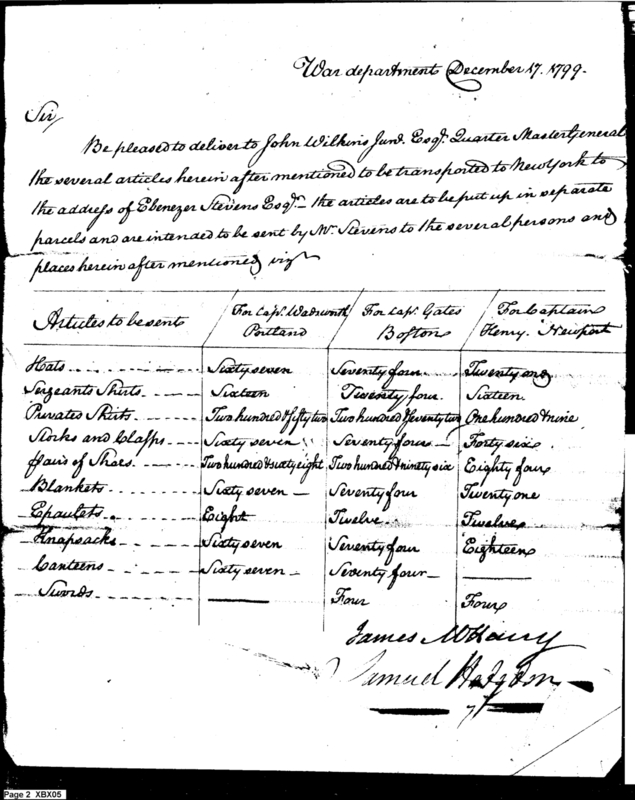 - Document: Request for Issue of Clothing, Equipment & Swords to Ports North of New York