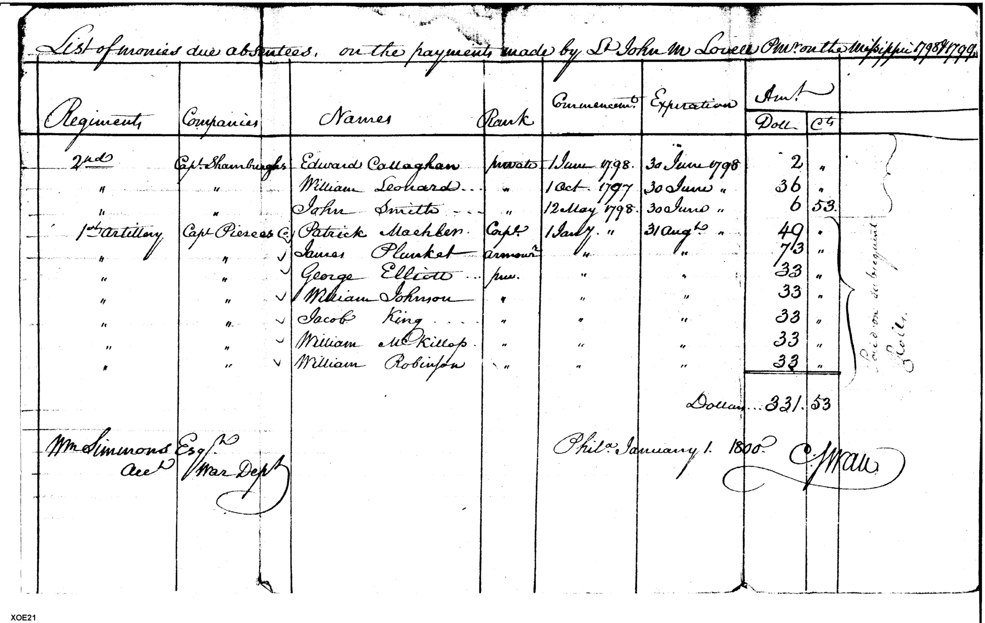 - In source: Collection: Post Revolutionary War Papers, 1784-1815. (RG94)