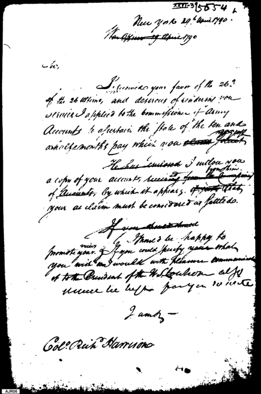 - Document: War Office provides status of Harrison's account