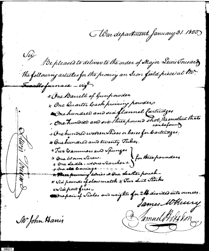 - Document: Request for Issue of Cannon Implements & Ammunition for Proving a Cannon Barrel