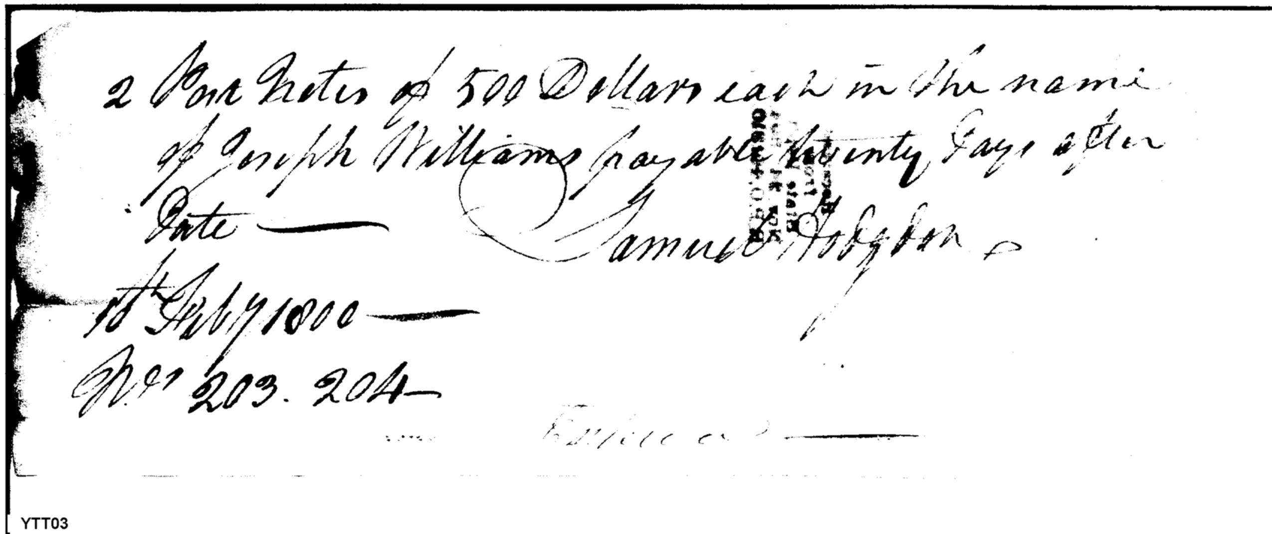 - Document: Certificate of Post Notes of 500 dollars each