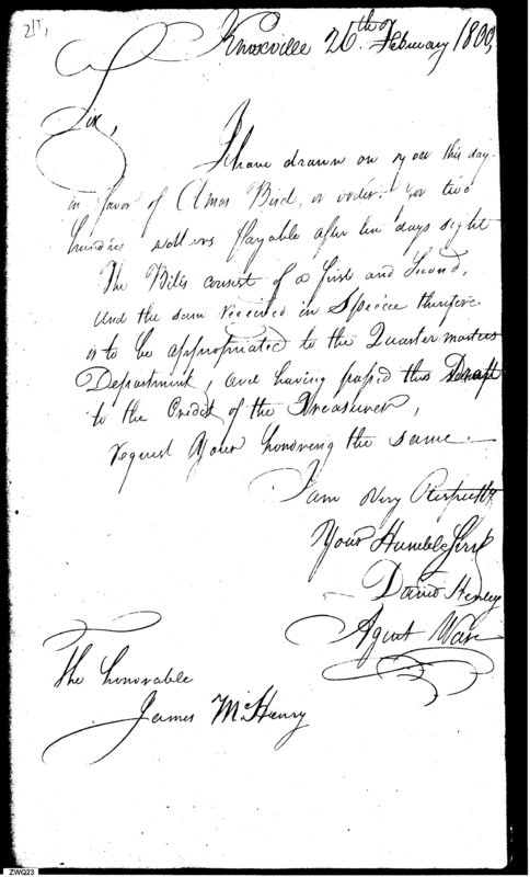 - In source: Collection: Letters Sent by David Henley, Agent of the War Department, May 1, 1799-May 7, 1800. (RG217)
