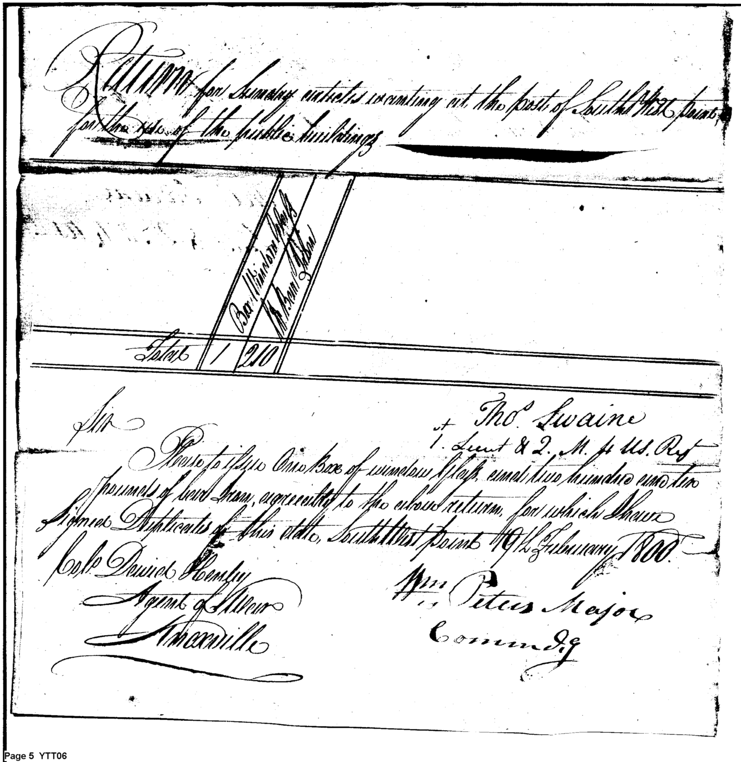 - Document: Duplicate Returns for the Quarter Master Stores in February 1800