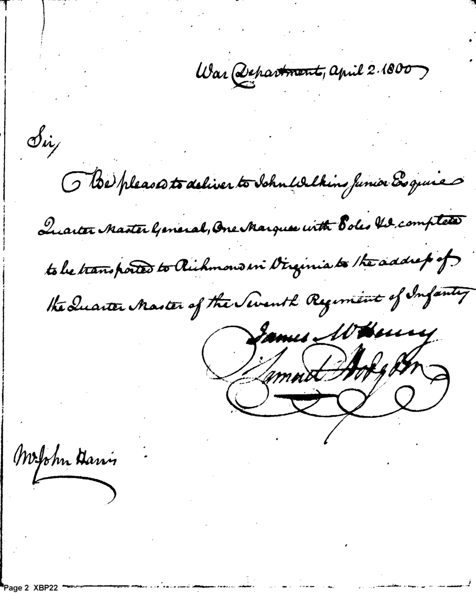 - Document: Request for Issue of Marquee Tent for 7th Infantry Regiment, Richmond