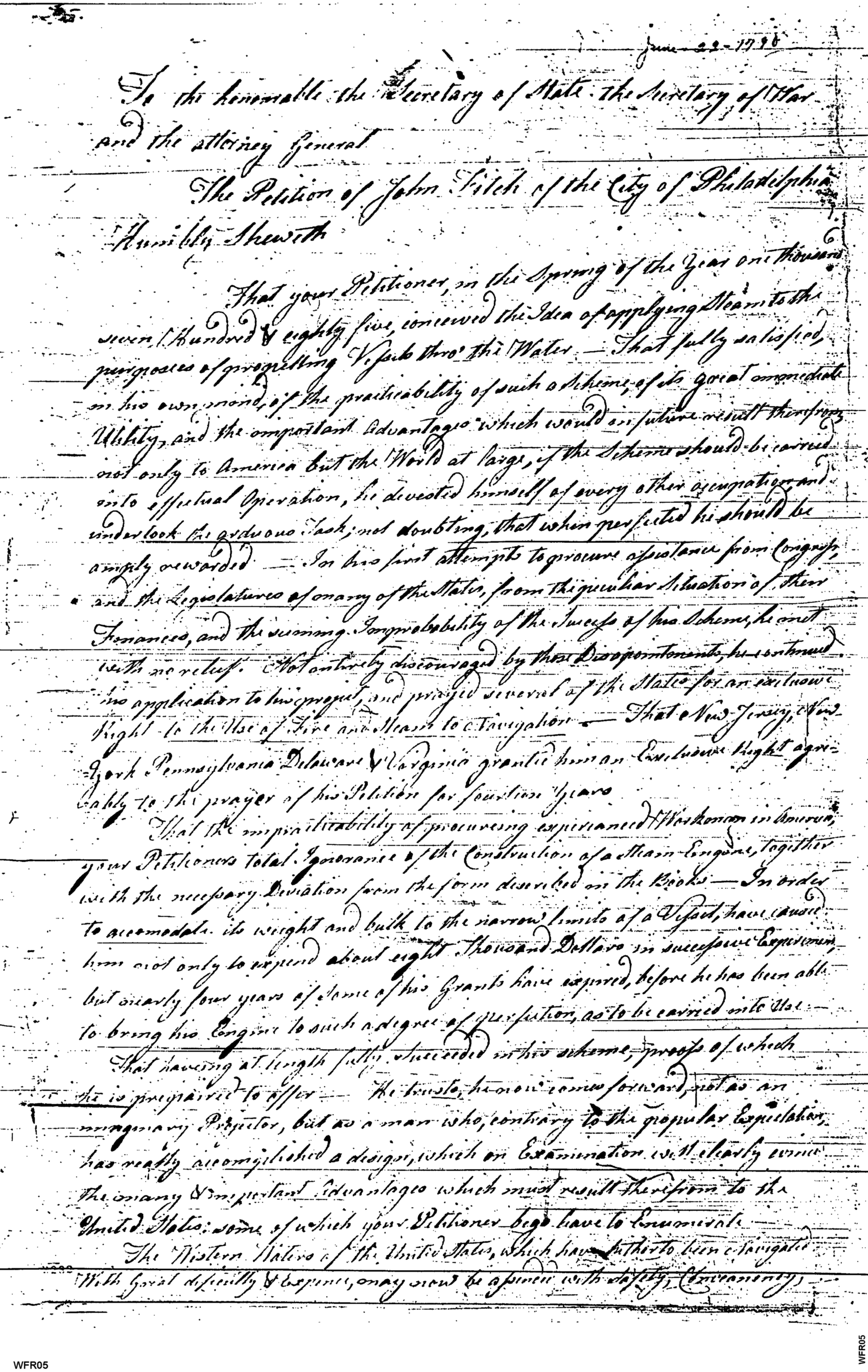 - Document: Petition of John Fitch Respecting His Steam-Powered Vessel