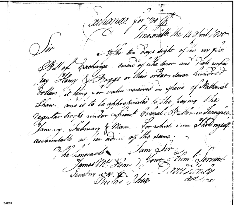 - Document: Payment Henry & Boggs value received in specie of Nathaniel Shaw for paying regular troops under Lieutenant Colonel Butler