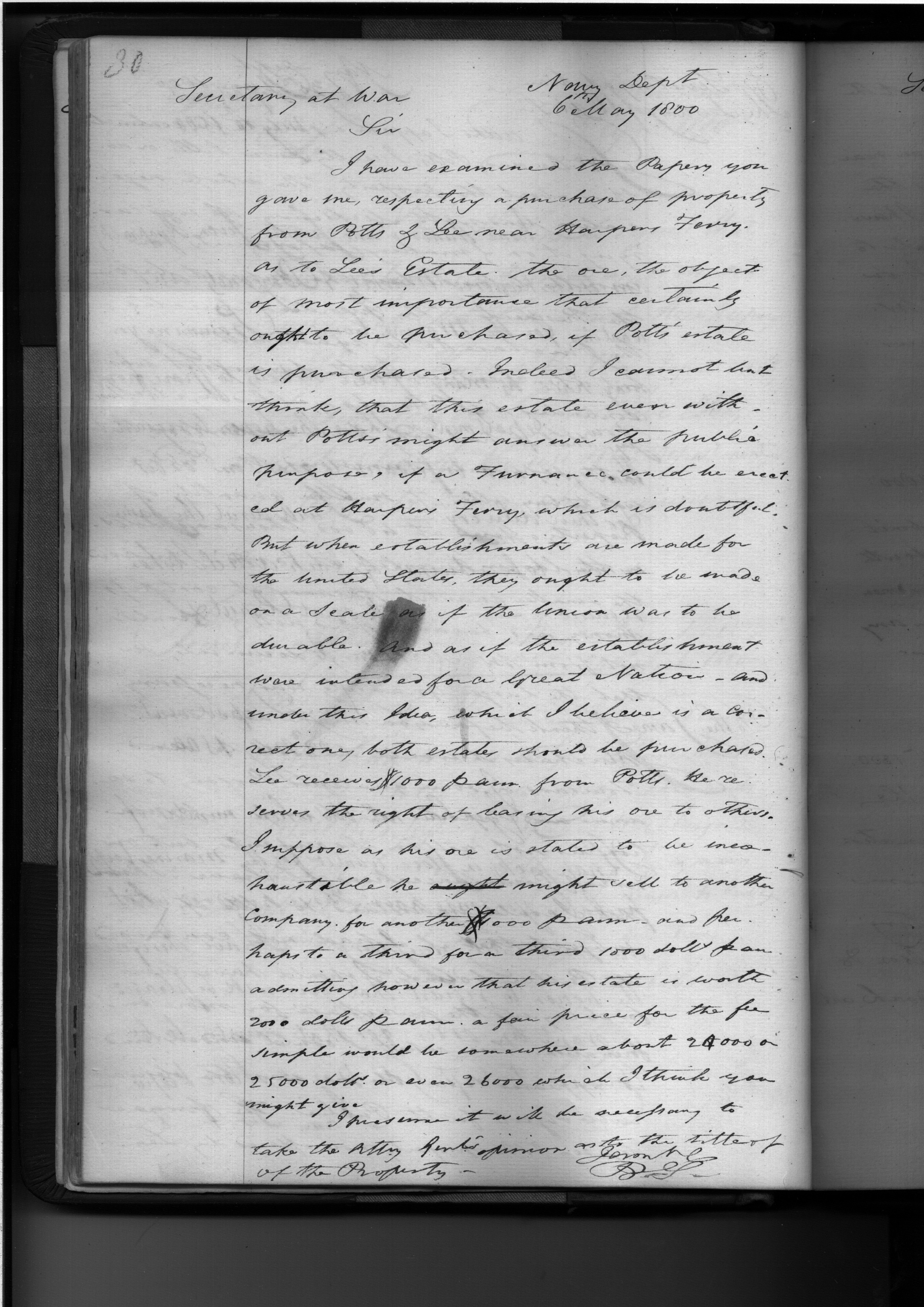 - Document: Asks about the Possibility of Purchasing Potts & Lee property in Harper's Ferry