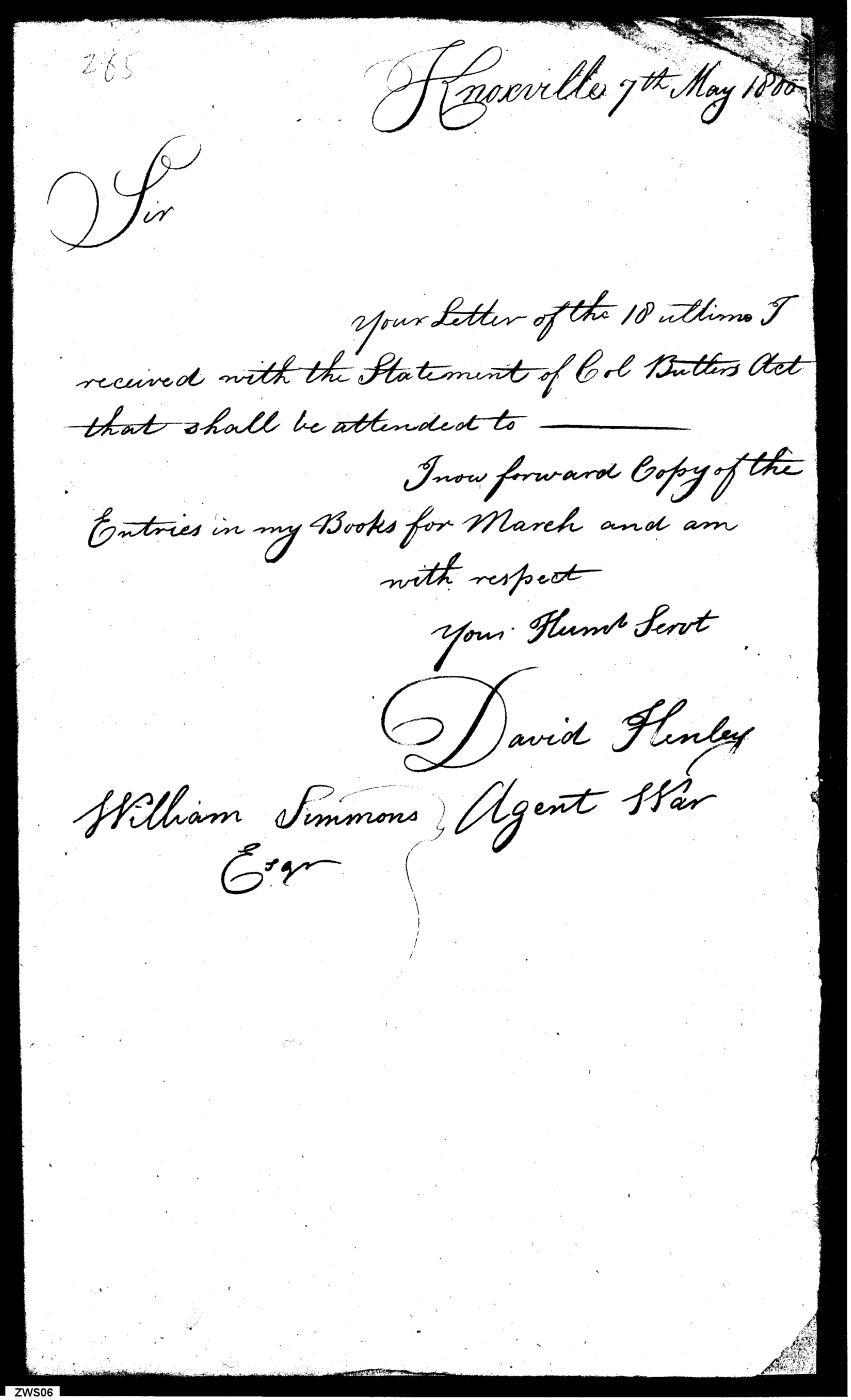 - In source: Collection: Letters Sent by David Henley, Agent of the War Department, May 1, 1799-May 7, 1800. (RG217)