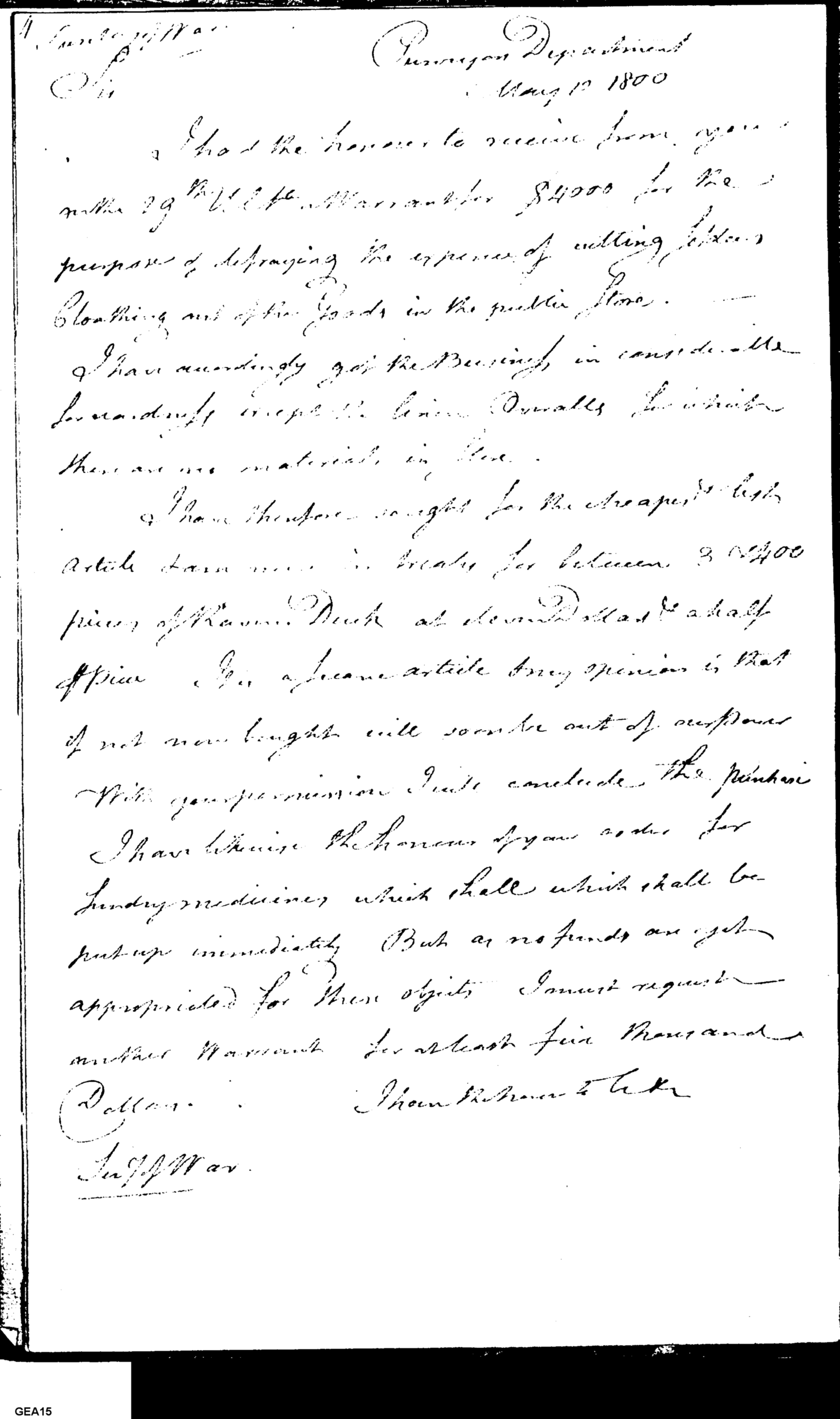 - Document: Discussion of Purchases of Clothing & Medicine for the Army